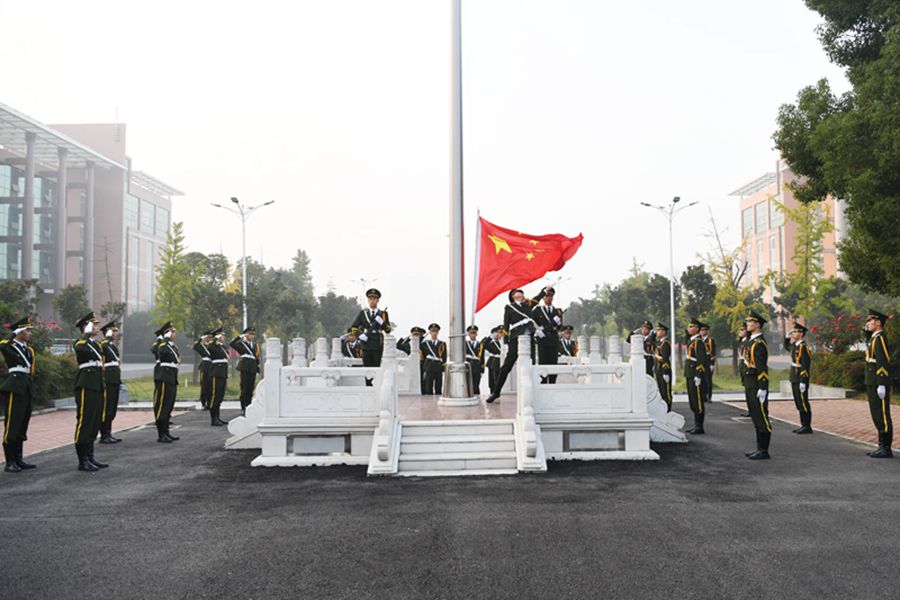早晨7点整,国旗护卫队队员们英姿勃发、步履铿锵,在师生们的共同注目下出旗、升旗,全场7000余名师生齐声高唱《中华人民共和国国歌》,用嘹亮的歌声向祖国告白,用庄严的仪式向祖国致敬。