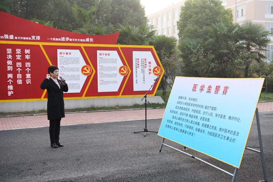 副校长范真同志带领全体学生宣读医学生宣誓,表达了为祖国医药卫生事业和人民身心健康奋斗终身的决心。