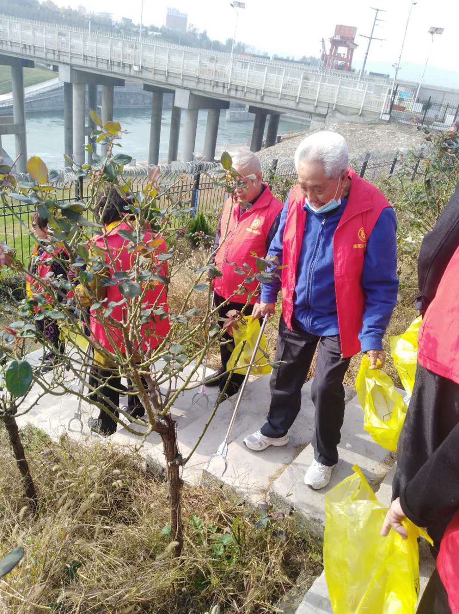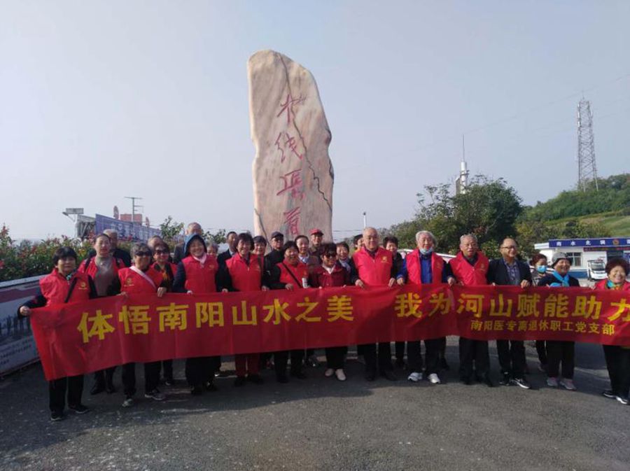 10月23日上午,南阳医专退休职工80余人兵分二路,早早来到五朵山、丹江和渠首等地,深秋的南阳山水,层林尽染,生机盎然。醒目的横幅展示出了这次登高活动的主题,“体悟南阳山水之美、我为河山赋能助力”。山林里、渠首旁、丹江边,身着红色志愿服的老人们结伴而行,捡拾路边丢弃的塑料袋、水瓶等垃圾,用实际行动守护青山绿水,感召游客们在尽情享受青山绿水的同时,更要携起手来,共同保护好南阳的三山三水。