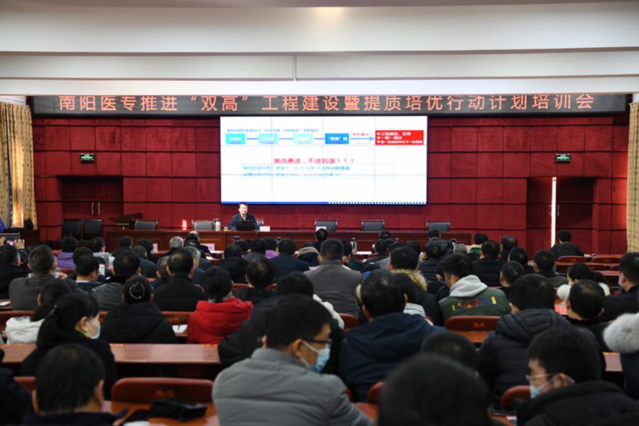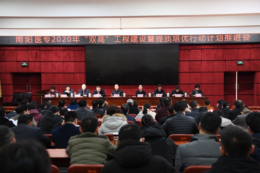 本网讯(文/教务处 梁亮)近日,南阳医专召开了“双高”工程建设暨提质培优行动计划培训、推进系列会议。校领导班子全体成员出席会议,会议由校党委委员、副校长范真主持。学校及附属医院副科以上干部参加会议。基于“疫情”防控的需要,本次系列会议采取了主会场+钉钉直播视频会议的形式,其他行政人员及教师线上参加会议。