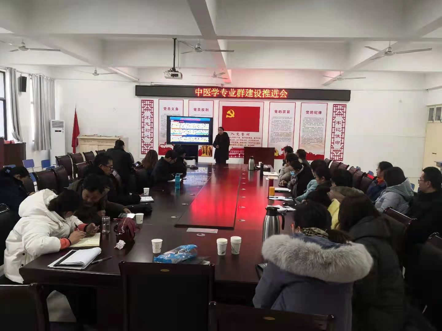 本网讯(文/中医系 张晓丽)为进一步推进“双高校”建设,促进学校高质量发展,12月31日下午,我系中医学专业群建设推进会在301党员活动室召开。教务处处长刘荣志及中医系全体教职工参加会议。会议由中医系书记张明丽主持。