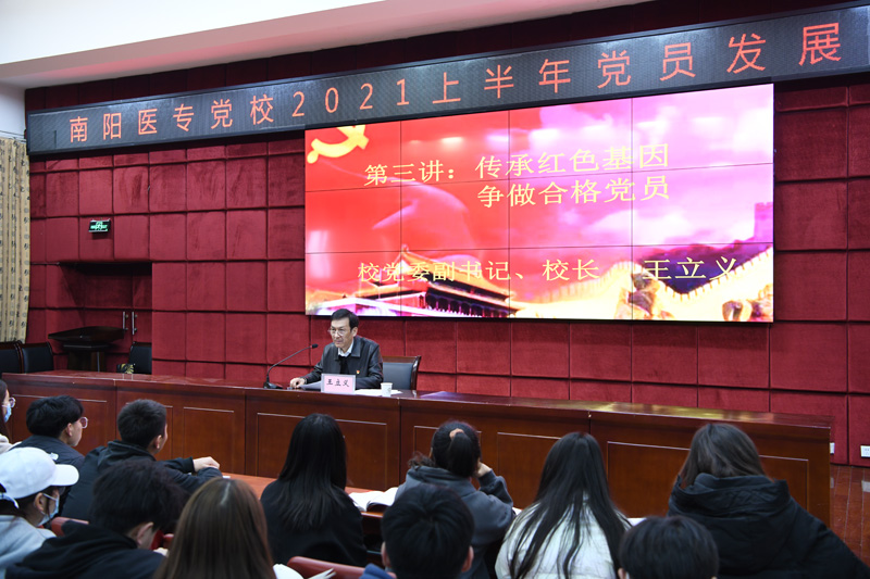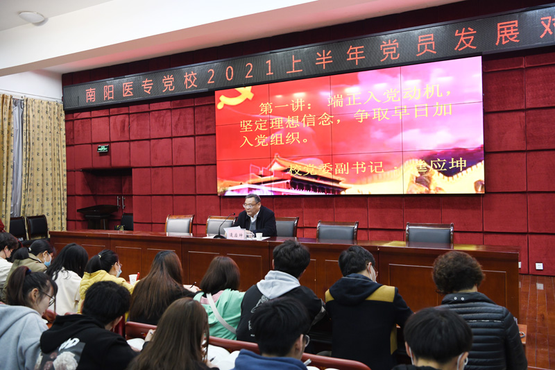 本网讯(文/组织部 刘萍)3月19日下午,中共南阳医专委员会党校在仲景西区图书馆学术报告厅举行2021上半年党员发展对象培训班开班典礼,线上分会场设在仲景东区学术报告厅。校党委副书记逵应坤出席开班典礼;党校校务委员,部分涉学系(部、院)党总支书记和老师参加了开班典礼。