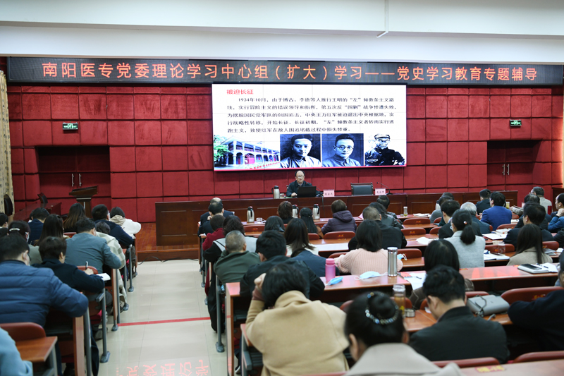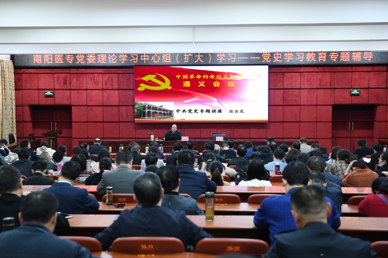 本网讯(文/宣传部 李峰松)为了深入学习贯彻习近平总书记在党史学习教育动员大会上的讲话精神,扎实推进党史学习教育的开展,4月14日下午,在图书馆五楼多功能报告厅,南阳医专党委举行理论学习中心组(扩大)会,特邀多盈手机在线登录关工委常务副主任、原党委副书记张金虎教授作党史学习教育专题报告。校本部副科级以上干部、辅导员、思政课教师、三所附院书记(或院长)参加会议。会议由党委副书记逵应坤主持。