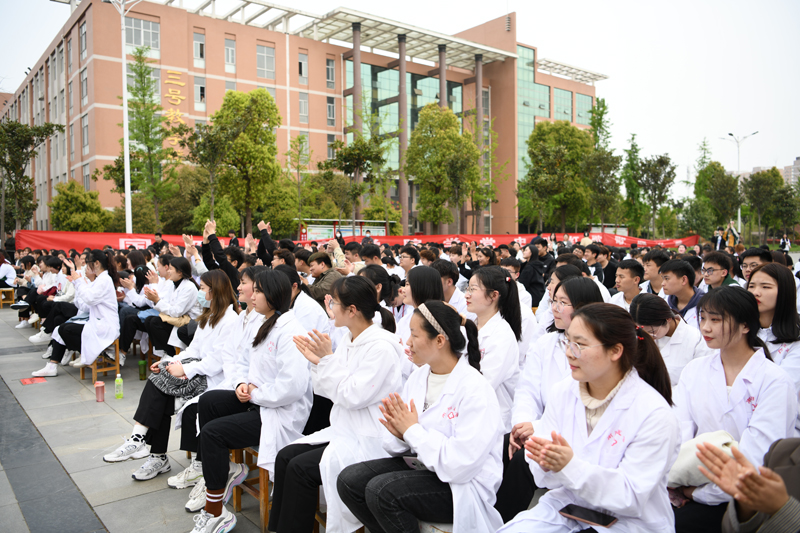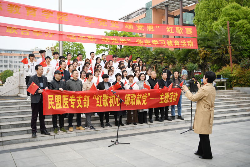 来自国教院2019、2020级16个班级的学生代表队精神饱满,激情高歌。同学们满怀对党和祖国的无限忠诚与热爱,颂扬党的光辉历史,讴歌党的丰功伟绩,抒发爱党爱国情怀。《没有共产党就没有新中国》等一首首脍炙人口的红色歌曲响彻美丽和谐的医专校园,展现了新时代大学生朝气蓬勃、昂扬向上、紧跟党走的精神风貌。一支部、基础医学部党总支、外事国教党总支的全体党员演唱了《时代号子》《团结就是力量》《打靶归来》《歌唱祖国》等红歌,表达了对党的热爱感恩之情和奋进新时代的责任担当,彰显了医专教师党员风采。