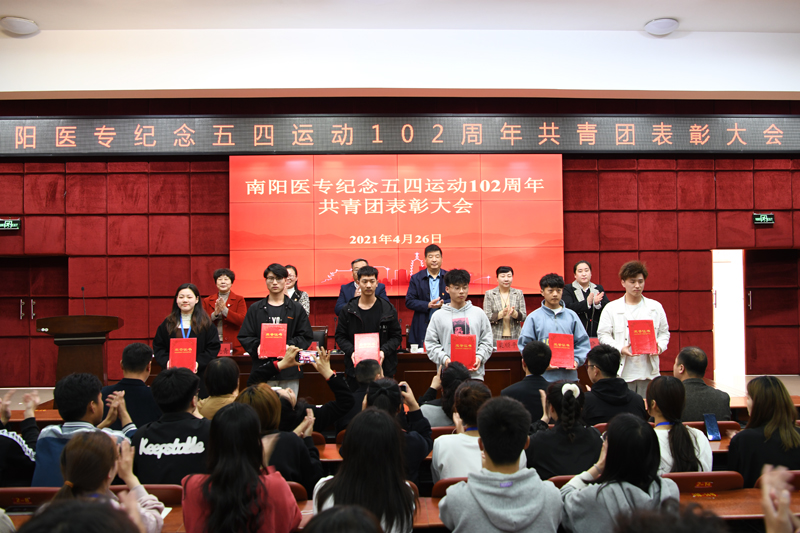 表彰大会在庄严的国歌声中拉开帷幕。副校长郭万周宣读了《关于表彰“学党史 强信念 跟党走”纪念五四运动102周年主题宣传教育实践活动获奖作品的决定》及《关于表彰2020年度“五四红旗团总支”“团员先锋岗”“先进团支部”“模范团干部”“优秀共青团员”和“优秀学生会干部”的决定》。随后,校领导为获奖代表颁奖。获奖集体代表药学系团总支书记金国柱和获奖个人代表护理系梁安琪作了热情洋溢的发言。