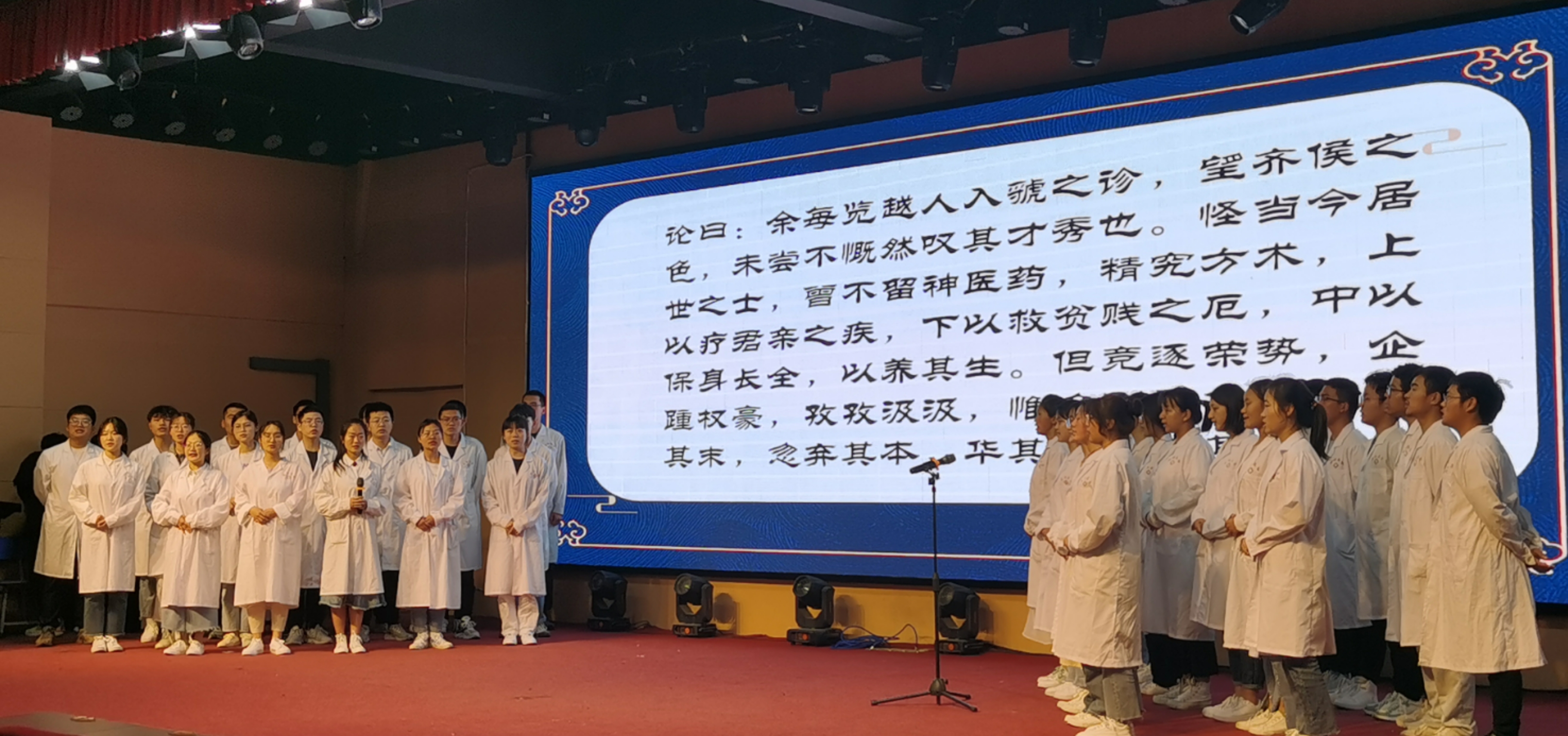 本网讯(中医系 张晓丽)为进一步贯彻落实习近平总书记在南阳考察时关于中医药发展的讲话和指示精神,激发中医系学子学习中医经典、传承仲景文化的热情,5月26日下午3点,中医系在仲景东区礼堂举行“南阳医专首届仲景经方传承班”开班典礼。校党委委员、副校长范真,中医系党总支书记张明丽、副主任肖跃红出席开班典礼,瓮恒副教授、王亚勤老师及仲景经方传承班全体同学参加了开班典礼。会议由张明丽主持。