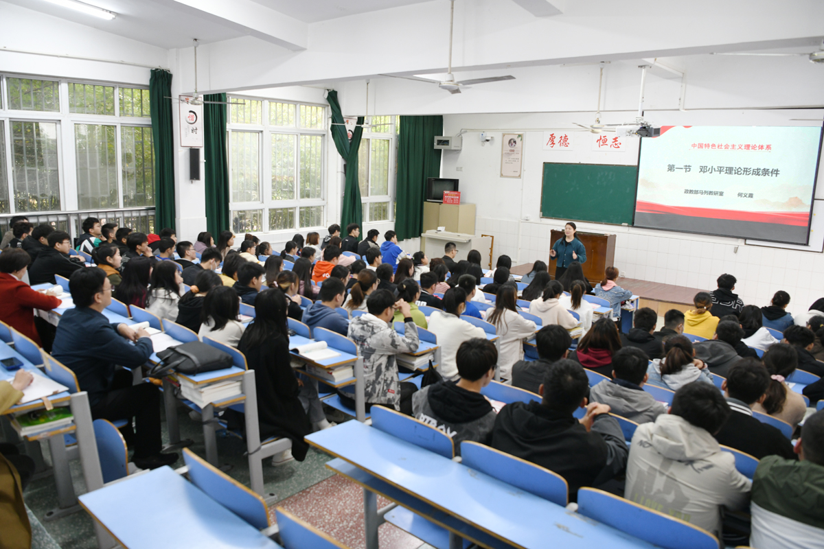 何义霞老师从邓小平理论形成的“时代背景、历史依据、现实依据”等三个方面讲授了“邓小平理论的形成条件”。