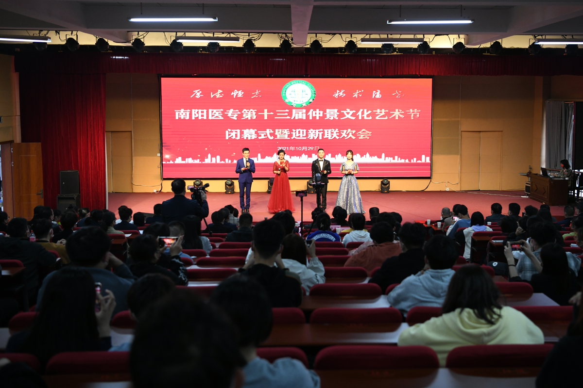 本网讯(文/宣传部 程安琪)10月29日下午,由中共南阳医专委员会主办,党委宣传部、学工部、中医系党总支承办的南阳医专第十三届仲景文化艺术节闭幕式暨迎新联欢会在仲景东区礼堂隆重举行。校党委副书记、校长王立义,党委副书记逵应坤,副校长张胜海、郭万周、范真,纪委书记刘金云,各系部院负责人和2021级新生代表现场观看,逵应坤为联欢会致辞。
