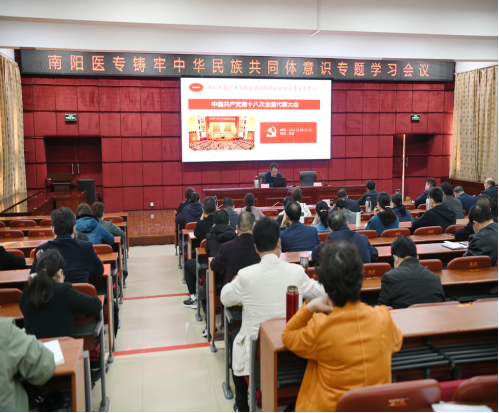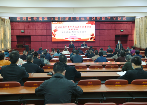 本网讯(文/组织(统战)部 李梦华)11月3日下午,校党委召开铸牢中华民族共同体意识专题学习会议,邀请中共南阳市委党校统战理论教研部王果老师做专题辅导,校党委副书记逵应坤主持会议。学校党委理论学习中心组成员、校本部中层正职干部和主持工作的副职干部、思政课教师、系(部、院)所属党支部书记、统战委员和学工办主任、三所附属医院书记、分管院领导及统战专干参加了会议。