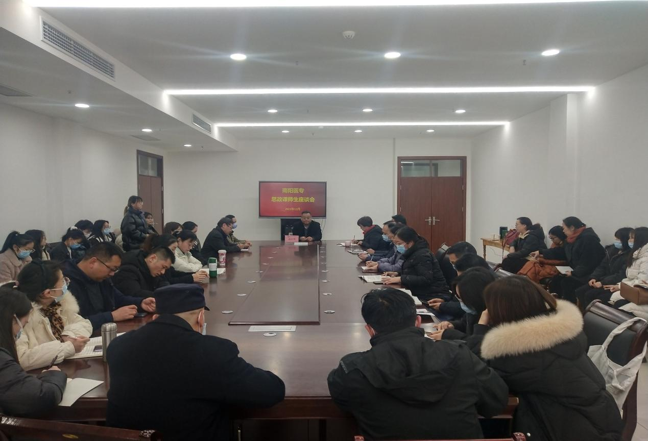 本网讯(文/政教部 李建效)为全面提高多盈手机在线登录思政课课堂教学质量,12月15日下午,政教部在仲景文化中心六楼会议室组织召开了思想政治理论课师生座谈会。校党委副书记逵应坤出席座谈会并发表重要讲话,全体思政课教师及学生代表60余人参加座谈会。政教部主任冯晓青主持座谈会。