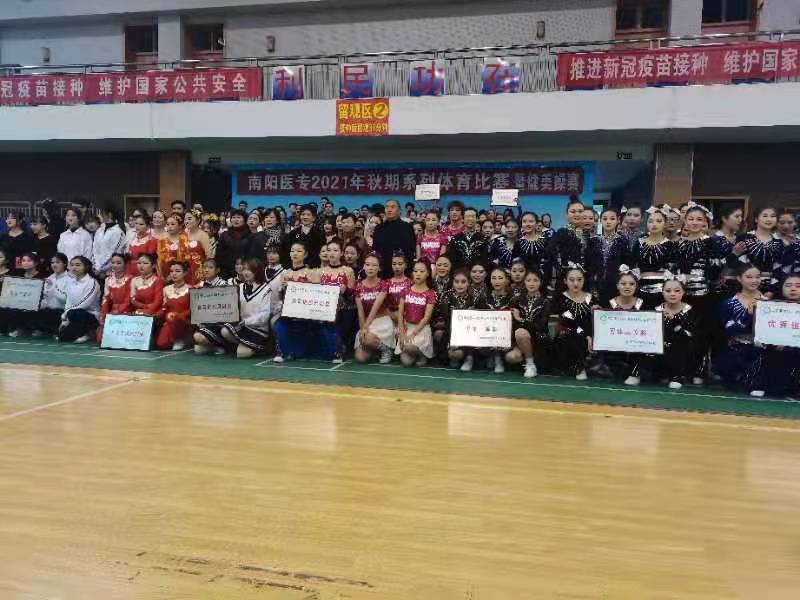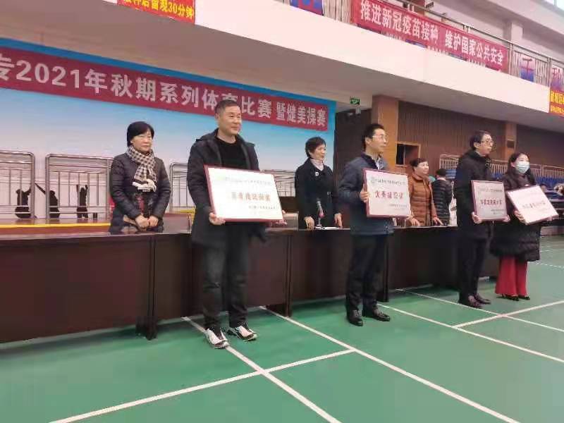本网讯(体教部 李坤贤)12月15日下午,多盈手机在线登录2021年健美操比赛暨秋期系列体育比赛颁奖仪式在仲景西区体育训练馆隆重举行。副校长范真出席并致辞,学生处处长梁顺平、体育教学部书记、主任刘静霞参加颁奖仪式。