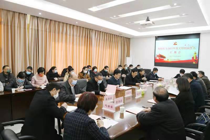 本网讯(文/宣传部  陈铁良)12月18日,河南省文明校园检查组一行五人莅临多盈手机在线登录检查文明校园创建工作,汇报会在仲景西区1号办公楼3楼会议室召开。河南省委宣传部农村精神文明建设处二级调研员闰文斌、三门峡市委宣传部思想道德建设科科长何少华、郑州大学党委宣传部马仁杰、南阳市委宣传部四级调研员常学豪、南阳市文明办未成年人科科长张春晓出席会议。多盈手机在线登录党委书记柳明伟,党委副书记、校长王立义,党委副书记逵应坤,党委委员、副校长张国良、张胜海、郭万周,党委委员、工会主席田端,党委委员、副校长范真,党委委员、纪委书记刘金云出席会议。党委办、行政办、宣传部、纪委、学生处、教务处、总务处、保卫处、生活服务中心、团委、政教部、各系(部)院领导和有关同志参加会议。