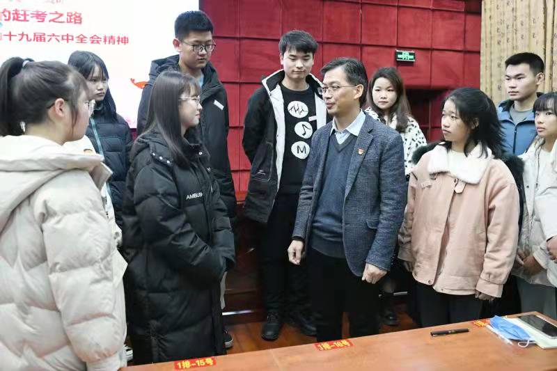 逵应坤强调,一要加强学习,深入领会。各党总支、支部要把学习宣传贯彻党的十九届六中全会精神作为当前和今后一个时期的重大政治任务,精心安排部署,周密组织实施,制定系统学习计划,创新学习方式,通过线上线下学、集中讨论学、全面系统学、联系实践学,开展多层次的专题学习,坚持原原本本读原文、认认真真悟真理,吃透精神实质,把握核心要义,自觉从党的百年奋斗重大成就和历史经验中汲取智慧、凝聚力量,不断提高政治判断力、政治领悟力、政治执行力。二要深化全会精神的宣传阐释。要把学习贯彻全会精神作为党史学习教育的重中之重,与深化学习习近平总书记关于教育的重要论述相结合,进一步巩固和提升党史学习教育实效。要把学习全会精神作为学校思想政治教育和课堂教学的重要内容,将全会精神融入思政课程,充分发挥思政课程引领作用,坚持以“进教材”为基础、以“进课堂”为核心、以“进头脑”为目标,做到学以致用,帮助大学生成长成才。三要用全会精神指导实践,推进学校工作。按照学懂弄通做实的要求,坚持把学习贯彻全会精神同学校教育工作实际紧密结合起来,把学习激发出来的政治热情转化为推动工作、促进发展的动力,全面加强党的建设,围绕学校中心工作,抓紧抓实教育教学、学生管理、疫情防控、校园安全等重点工作,以新担当、新干劲、新作风谱写学校事业高质量发展新篇章,为现代化河南和南阳副中心城市建设做出积极的贡献!以优异成绩迎接党的二十大胜利召开!