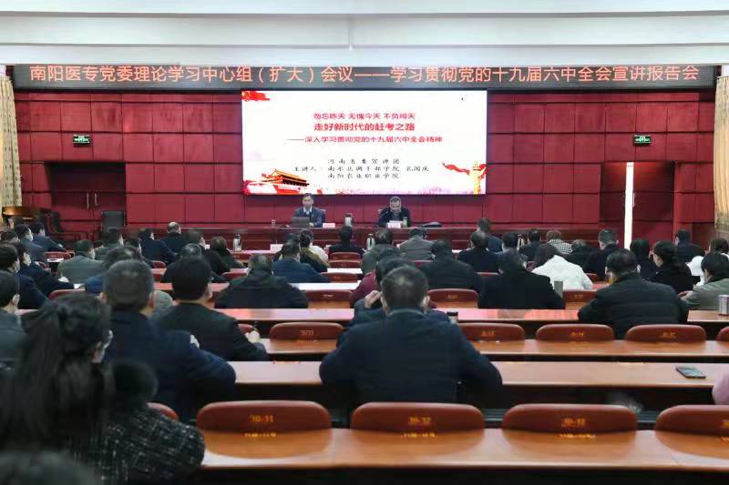 本网讯(文/宣传部 陈铁良)12月22日,河南省委宣讲团专家、南阳农业职业学院校长孔国庆教授来多盈手机在线登录宣讲党的十九届六中全会精神。多盈手机在线登录领导班子成员、校本部中层干部和学生代表参加会议。