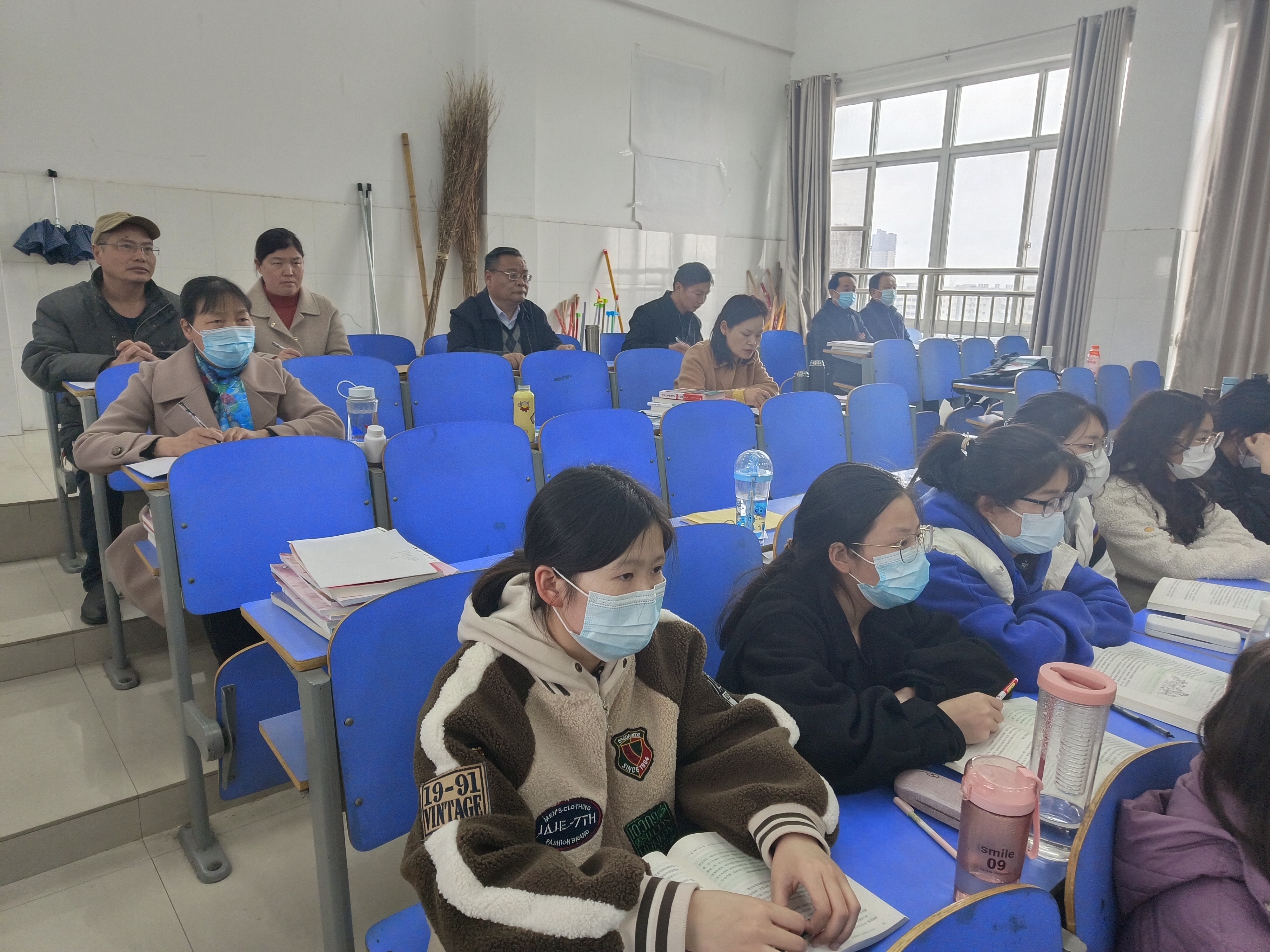 本网讯(文/马克思主义学院  卢孟)为响应省教育厅高校思想政治理论课“大听课、大调研”活动,持续深入落实习近平总书记在学校思想政治理论课教师座谈会上的重要讲话精神,扎实推进学校思想政治理论课建设,3月17日下午和18日上午,学校党委副书记逵应坤带领教务处处长刘荣志、质量管理办公室主任郭延东、马克思主义学院院长冯晓青到21级对外护理2班、对外口腔1班,听取了马克思主义学院陈萌和孙梦荻两位老师《思想道德与法治》课程。