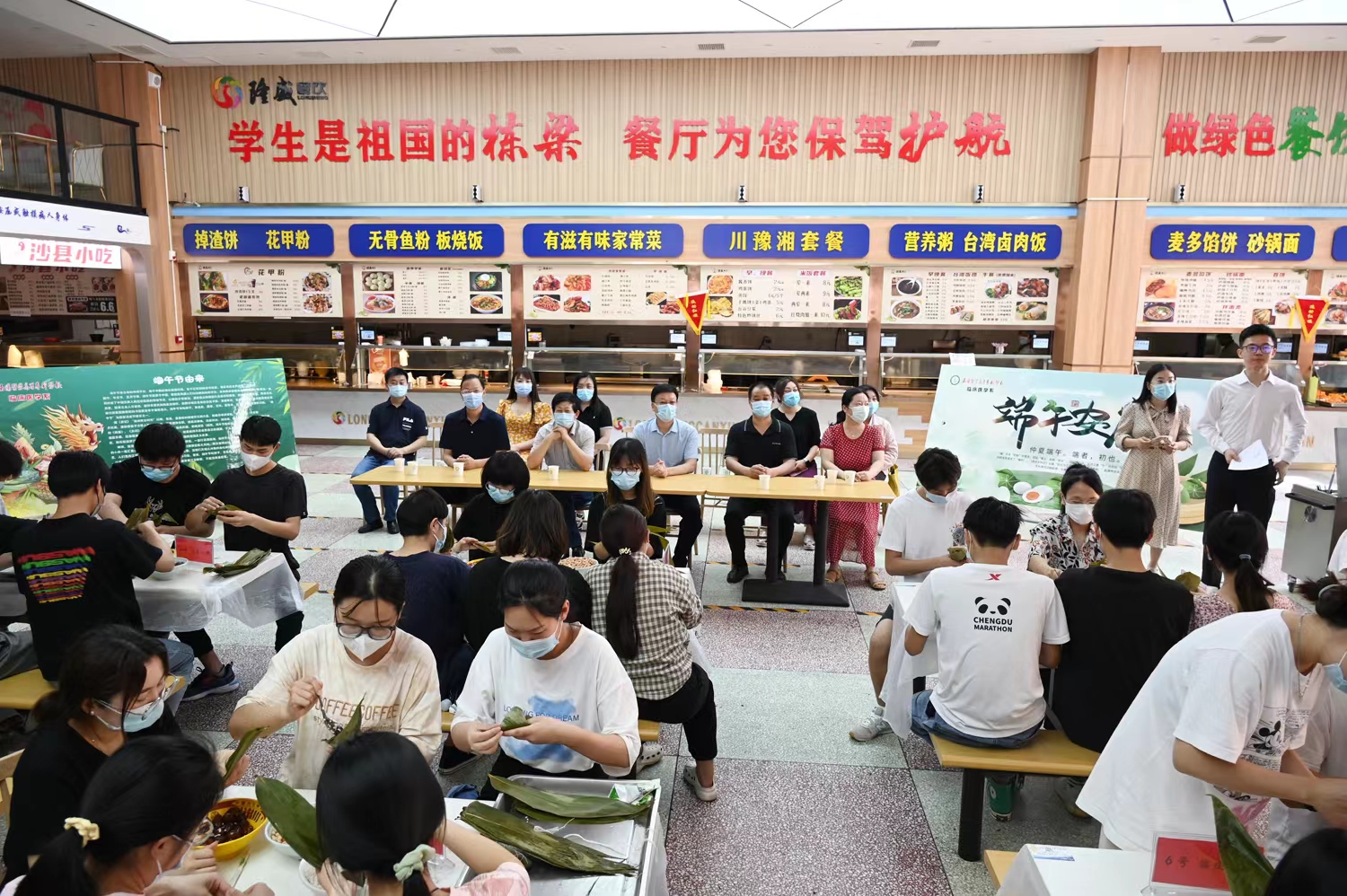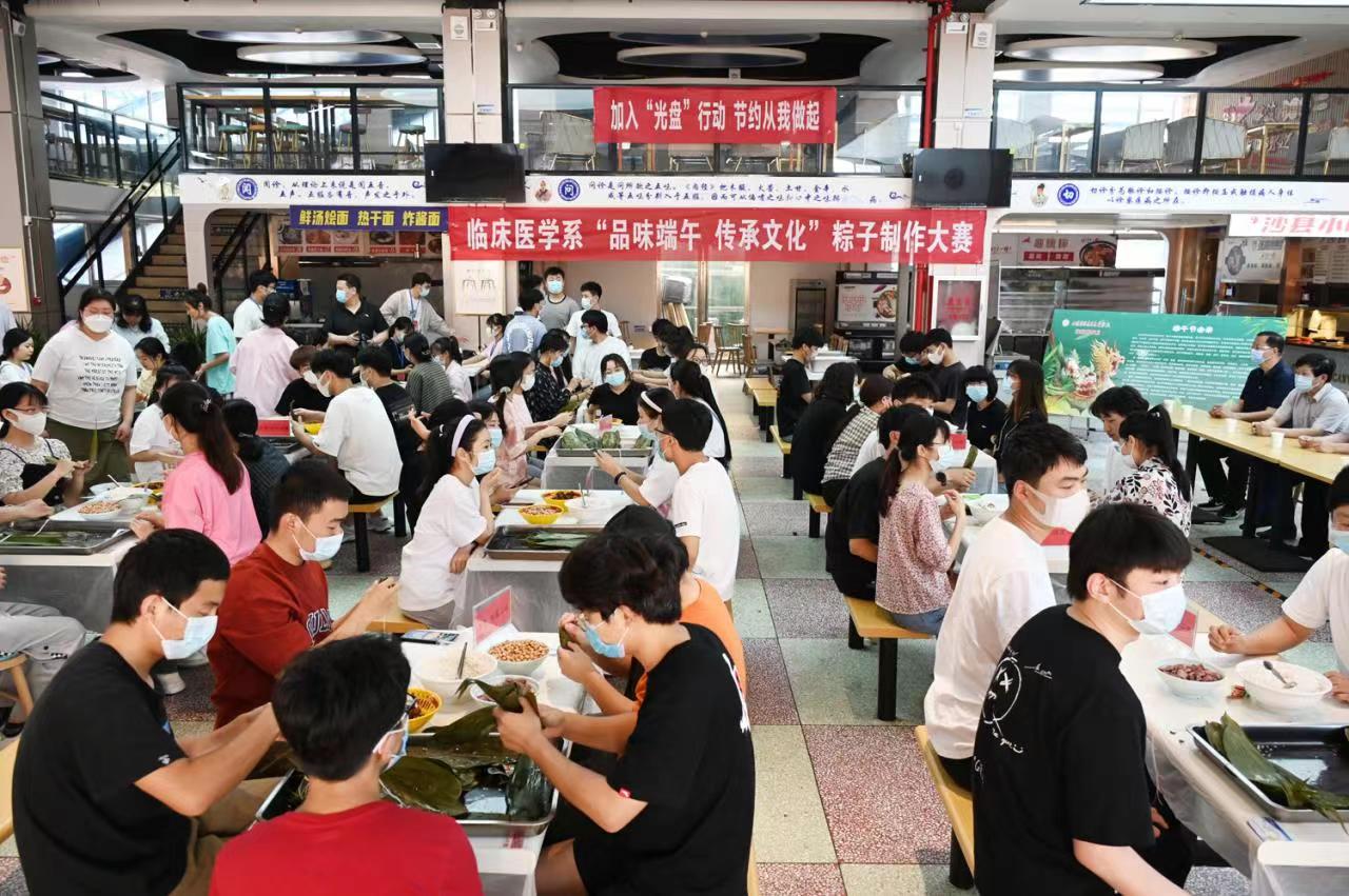 本网讯(文/临床医学系 王川)“四时花竞巧,九子粽争新”。端午将至,为大力培育和践行社会主义核心价值观,弘扬中华传统文化,2022年5月24日下午,临床医学系在仲景西区隆盛印象餐厅一楼举办“品味端午 传承文化”粽子制作大赛。党委书记柳明伟带领“三个联系”第一工作组成员莅临现场,与师生同乐,共迎端午。