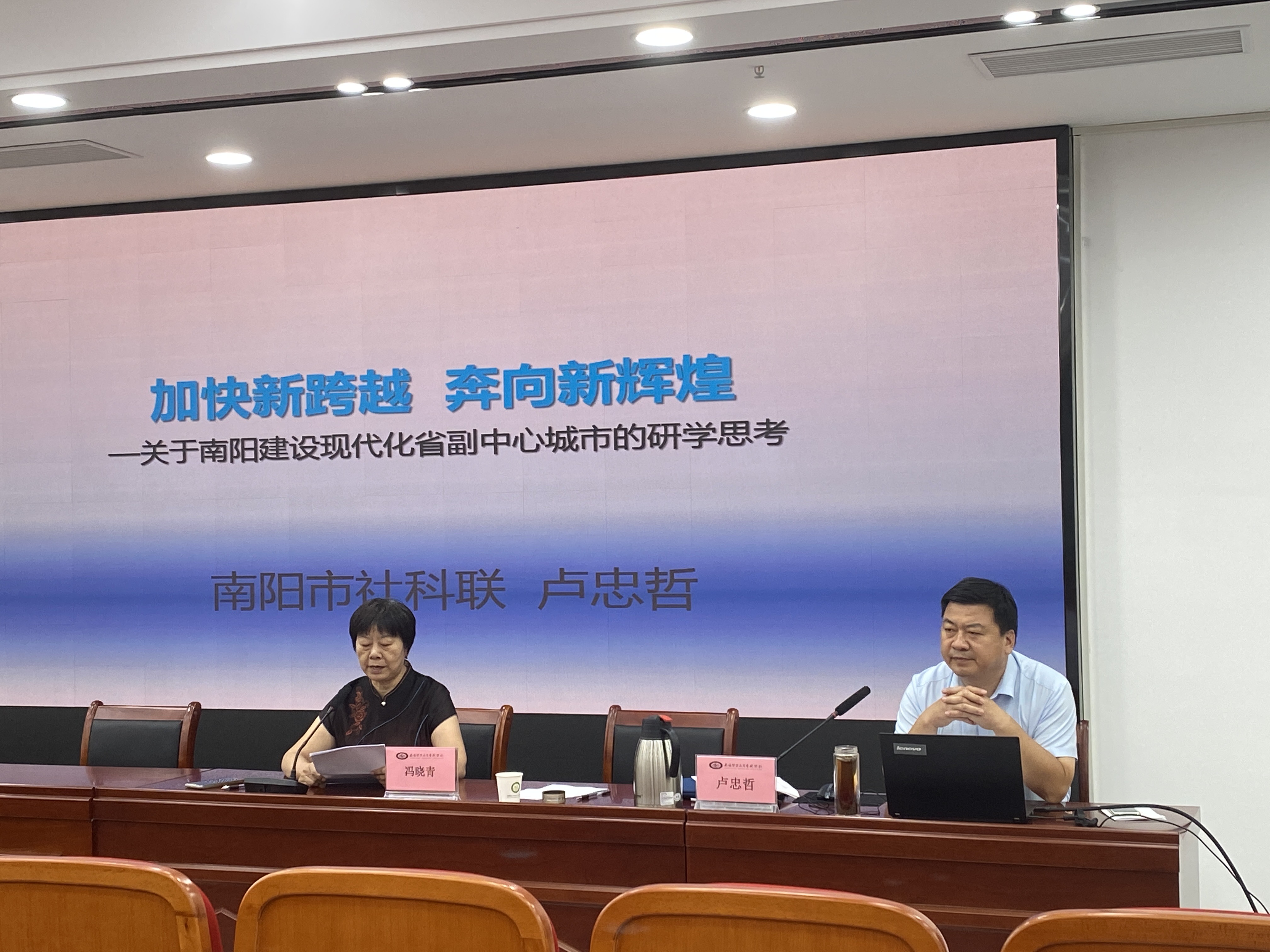 开班仪式结束后,市社科联副主席卢忠哲以《加快新跨越 奔向新辉煌——关于南阳建设现代化省副中心城市的研学思考》为题,全面分析了南阳建设河南省副中心城市的重大意义,面临的重大机遇、战略优势,存在的挑战短板、问题不足,下一步努力的方向重点、对策建议等。