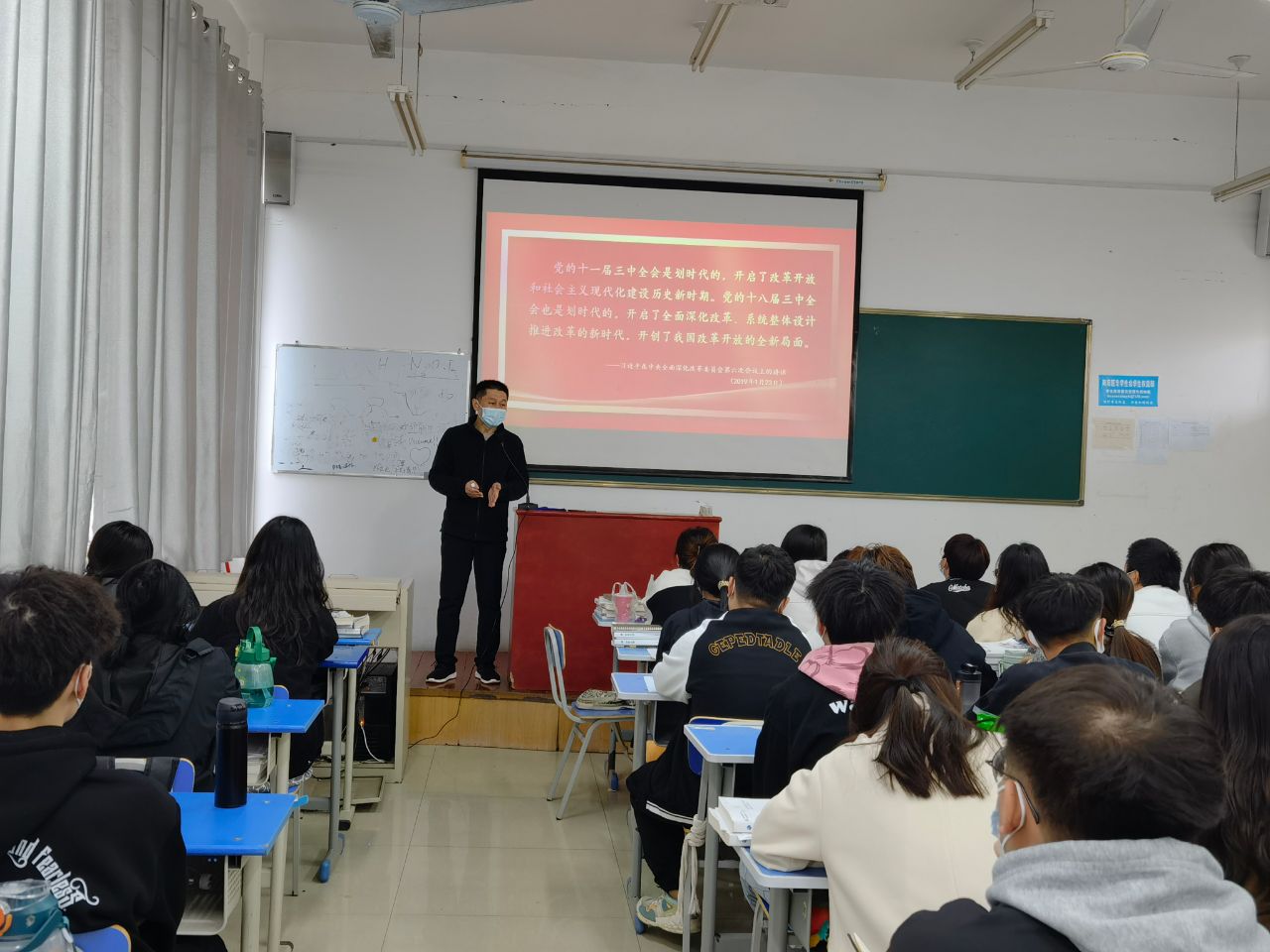 王校长认真听课,做记录。课后,王校长从授课教师理论解读的深度、备课视角的广度、课堂教学与学生结合的程度等方面肯定了魏毅老师的理论功底和教学能力,热情鼓励思政课教师要加强学习、解放思想、开拓视野,要将党的创新理论特别是党的二十大报告的内容融入思政课堂,与学生的专业相结合,充分发挥思想政治理论课作为育人主阵地主渠道的作用,紧密联系广大青年学生的思想实际铸魂育人。