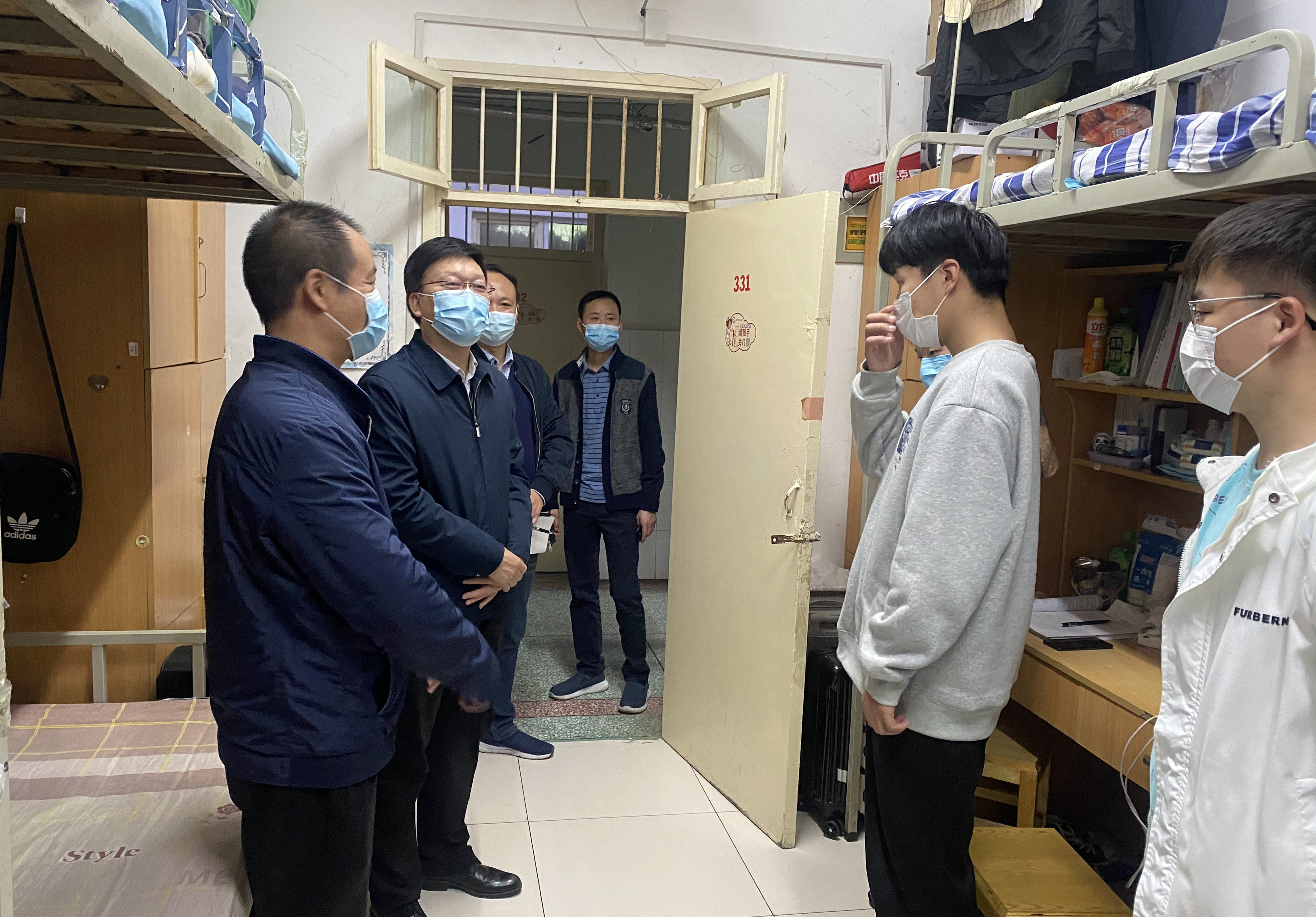在走访学生宿舍过程中,柳书记询问关怀学生的学习生活、身心状况、上课等情况,倾听了大家对学校工作的意见建议。柳书记指出,疫情防控形势复杂严峻,大家务必做好个人防护,注意自身安全。当前,党的二十大胜利召开,我们要认真学习领会党的二十大精神,深刻领悟党的二十大报告中总结的过去五年工作和新时代十年伟大变革的重大意义以及这十年党和国家极不寻常、极不平凡的发展历程,将中国共产党为实现国家富强、人民幸福的不懈奋斗精神和不断战胜一切艰难险阻的斗争精神,转化为我们战胜疫情的必胜信心和学习成长的动力源泉。要切实增强“四个意识”、坚定“四个自信”、做到“两个维护”,为中华崛起而读书,为实现中华民族伟大复兴的中国梦贡献青春力量。同时,在疫情防控期间学习不能松懈、质量不能下降,主动适应特殊时期的校园学习生活方式,强化自我保护意识,保持健康心态,加强体育锻炼,共同营造平稳安全有序的校园环境。