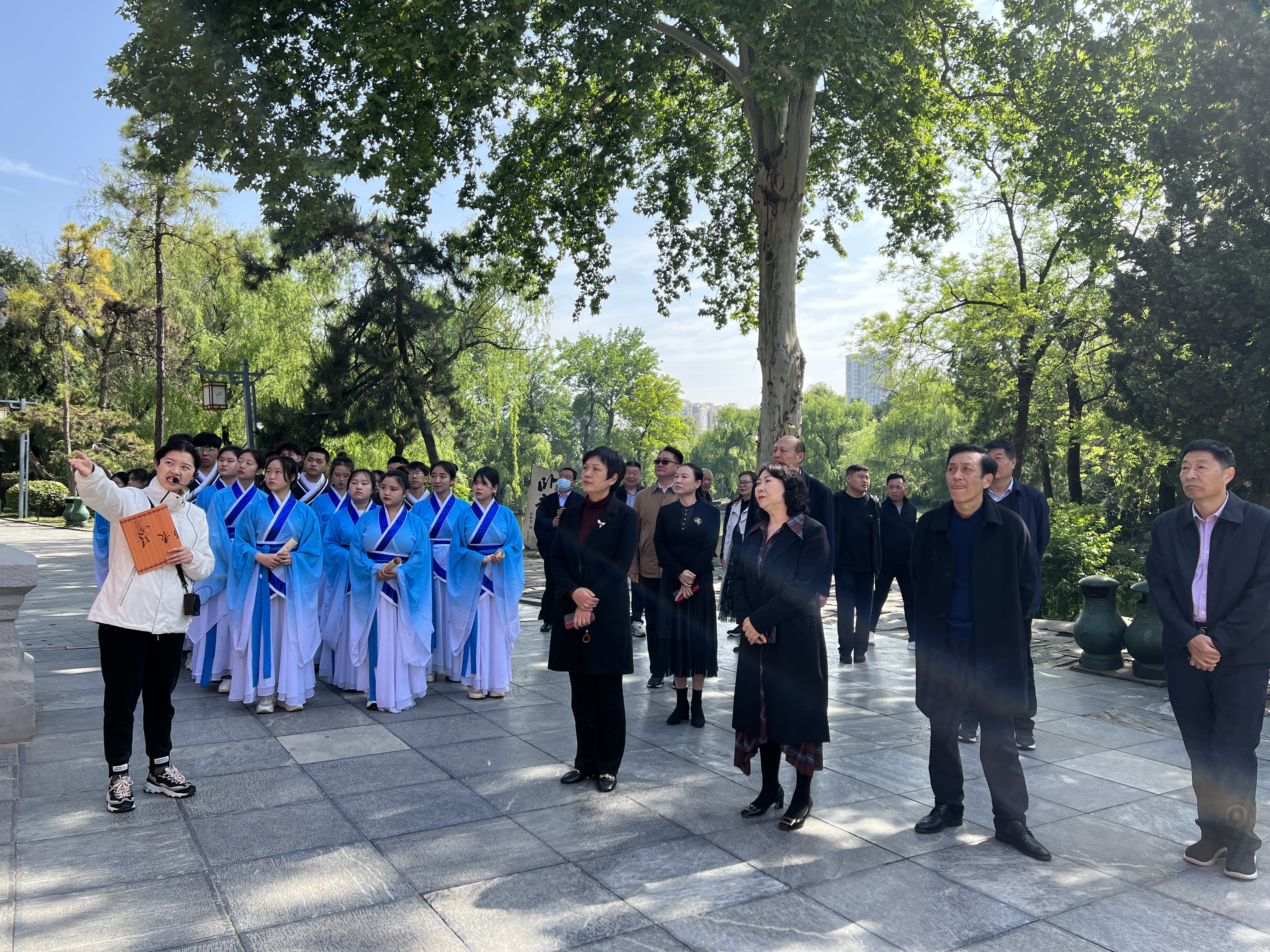 本网讯(文/乔鑫鑫)为响应“世界读书日”号召,4月25日上午,图书馆在卧龙岗文化园举办第十五届“阅读活动月”——“悦读研学树新风 卧龙书院读经典”主题读书活动。校领导王立义、张胜海、郭万周、田端、范真、刘金云,校党委宣传部、校工会、卧龙岗文化园等部门负责人和师生代表50余人参加活动。
