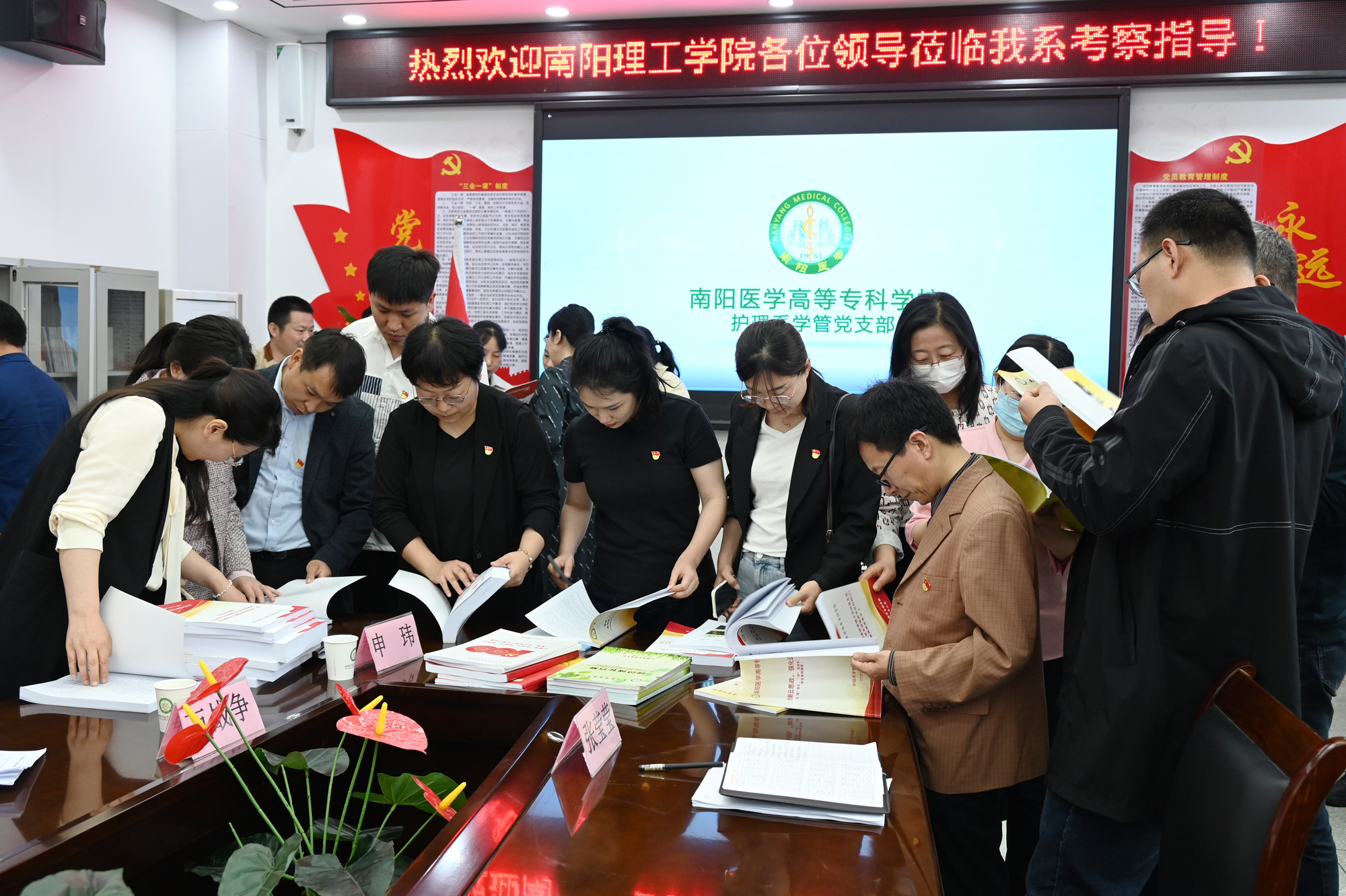 本网讯(组织部/邢富斌 武乐宁)为进一步提升高校党建工作质量,5月4日,南阳理工学院党委组织部副部长王耀辉、智能制造学院党委书记万战争、范蠡商学院党委书记闫合占、马克思主义学院党总支书记彭民工、生物与化学工程学院党委书记康磊、计算机与软件学院党委副书记申玮等一行来到多盈手机在线登录开展学习交流活动。南阳医专党委委员、纪委书记刘金云,组织部部长杜晓平、统战部部长王岩、护理系党总支书记宗山林、护理系主任吕云玲、临床系党总支书记秦玖刚及各先进基层党支部书记、组织员参加本次交流研讨。