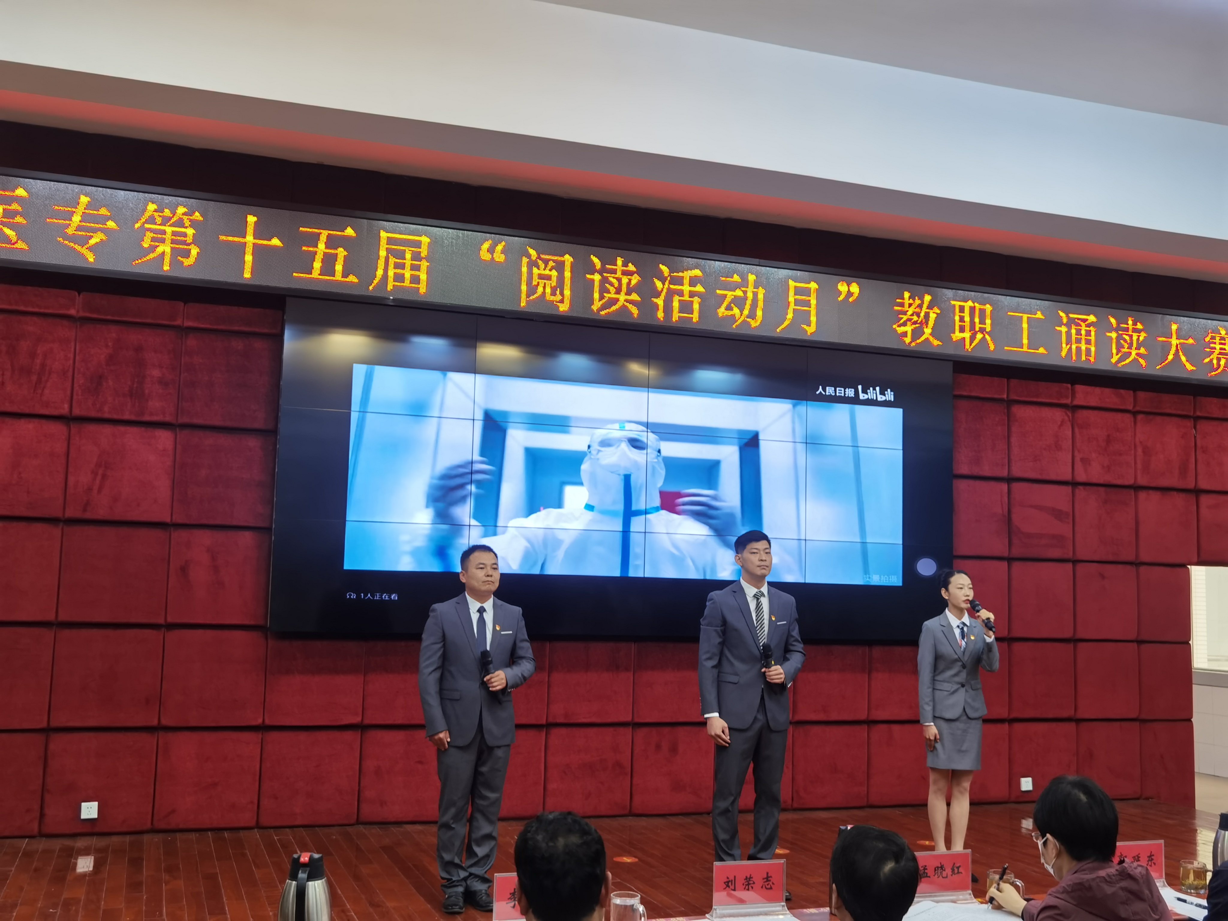 经过激烈角逐,体教部胡锴、武乐宁、段美君老师带来的诵读作品《礼赞盛世 共谱华章--党的二十大赞歌》获得一等奖,针骨系李雪、钱航、梁振新、马驰老师的诵读作品《踔厉奋进新征程 学校发展开新篇》,生活服务中心胡磊、卢雅婷、杨需、李莎老师的诵读作品《礼赞党的二十大》、护理系刘宇、刘磊、胡殿鹏、张倩的诵读作品《不朽》获得二等奖,卫生管理系董菡、王一帆老师的诵读作品《青春中国》、临床医学系蒋李园、 李旻、郑璞老师的诵读作品《我爱你中国》、纪委与统战部李梦华、龚如东、张明坤、路娇老师的诵读作品《洌洌清风》、基础医学部刘芳芳、靳文雨、赵恬田老师的诵读作品《青春中国》、外事国教院夏灵果、李冰、朱欣欣老师的诵读作品《让青春之歌在新的伟大奋斗中唱响》获得三等奖。