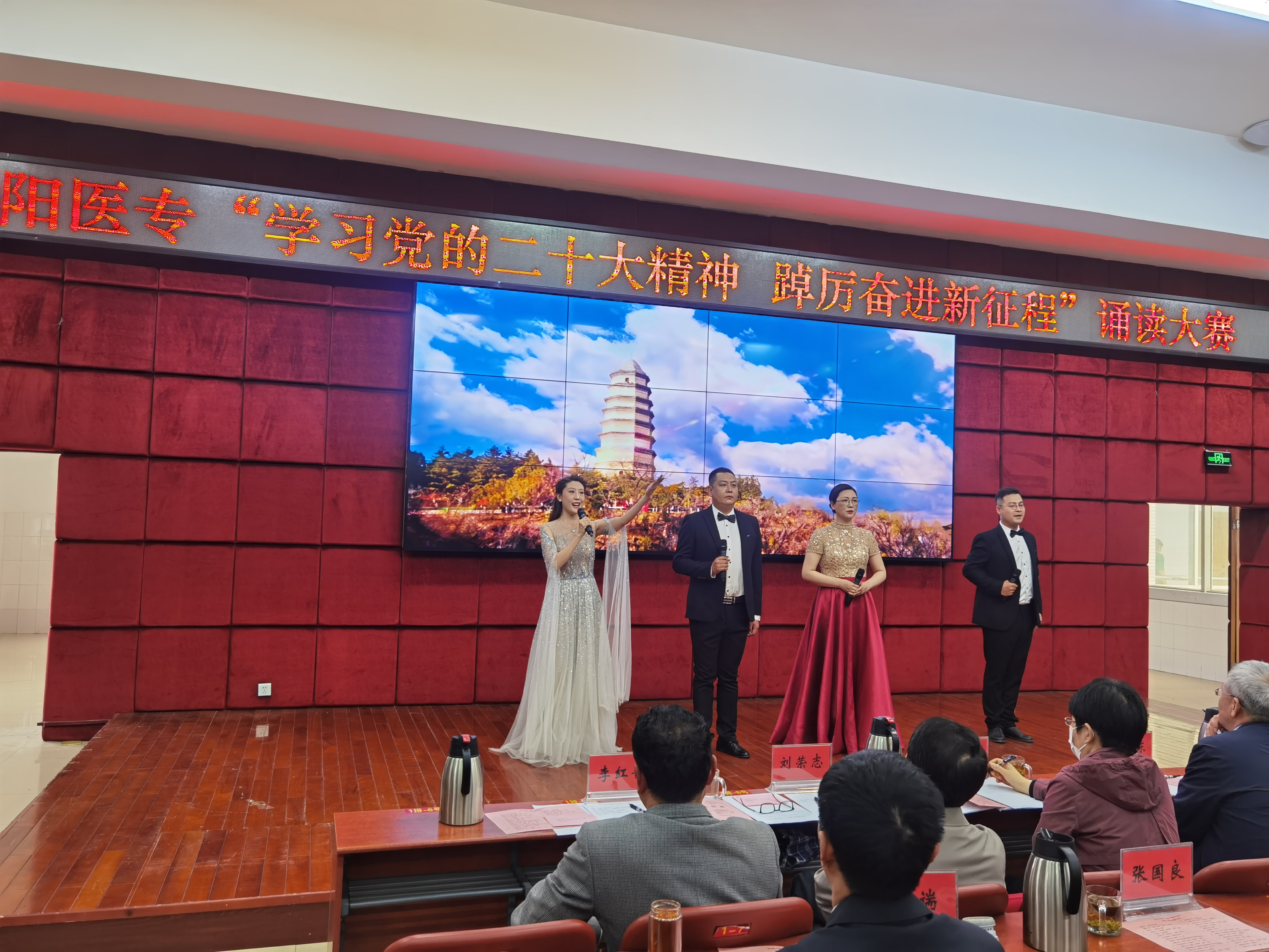 本次经典诵读大赛,各参赛部门精心组织,来自全校各部门,系(部)院的16支参赛队进入决赛。各参赛作品紧扣主题,有讴歌礼赞祖国的诗篇,有绚烂青春之歌的礼赞,有领航新征程的号角……参赛老师们精神昂扬、声情并茂、富有感染力,表达了对党和国家的忠诚热爱、对美好未来的向往,展现了南阳医专教职工的风采。整场比赛异彩纷呈,掌声、赞叹声持续不断,好评如潮。