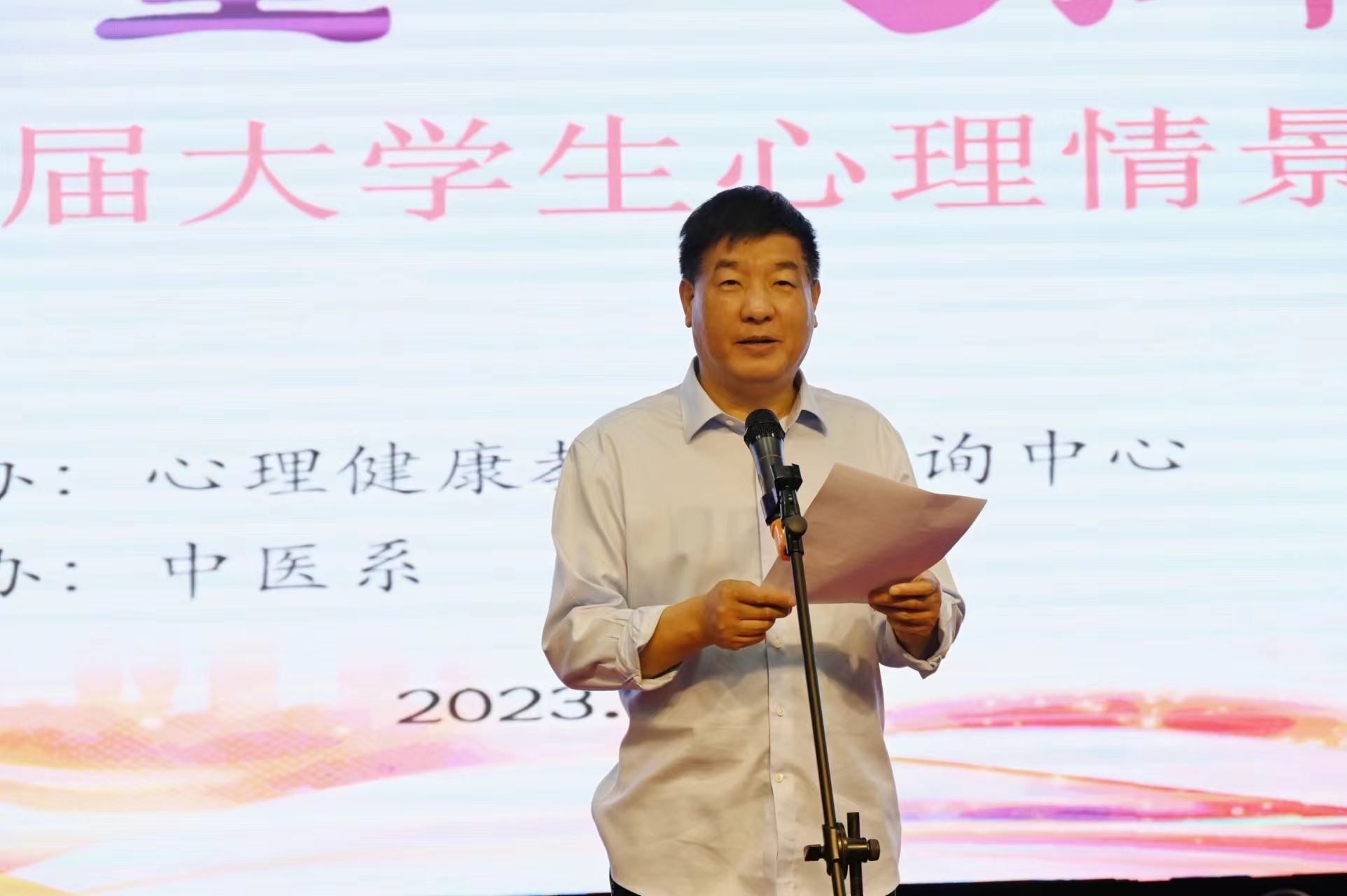 本网讯(文/学生处 张童童)为加快推进心理健康教育工作标准化建设,进一步普及心理健康知识,帮助大学生树立正确的心理健康观念,5月25日——“大学生心理健康日”当天下午,多盈手机在线登录于学校仲景东区礼堂隆重举行了南阳医专第十七届大学生心理情景剧大赛决赛。校党委委员、副校长郭万周出席大赛并致辞。各系(院)领导、老师及学生代表500余人现场观看了比赛。