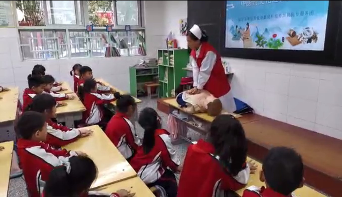 5月26日下午,护理系副主任赵霞带领教师深入南阳市第六十五小学校,给孩子们带来了《科学用眼 睛”彩童年》的精彩讲座,让孩子们了解到不良的用眼习惯对眼睛的损坏,并学习到正确的护眼常识。潘纯钰老师还现场为孩子们演示讲解了心肺服务技术,使孩子们从小掌握应急救护技术。赵主任团队教师还指导孩子们体验了“耳穴压豆”等中医护理技术。