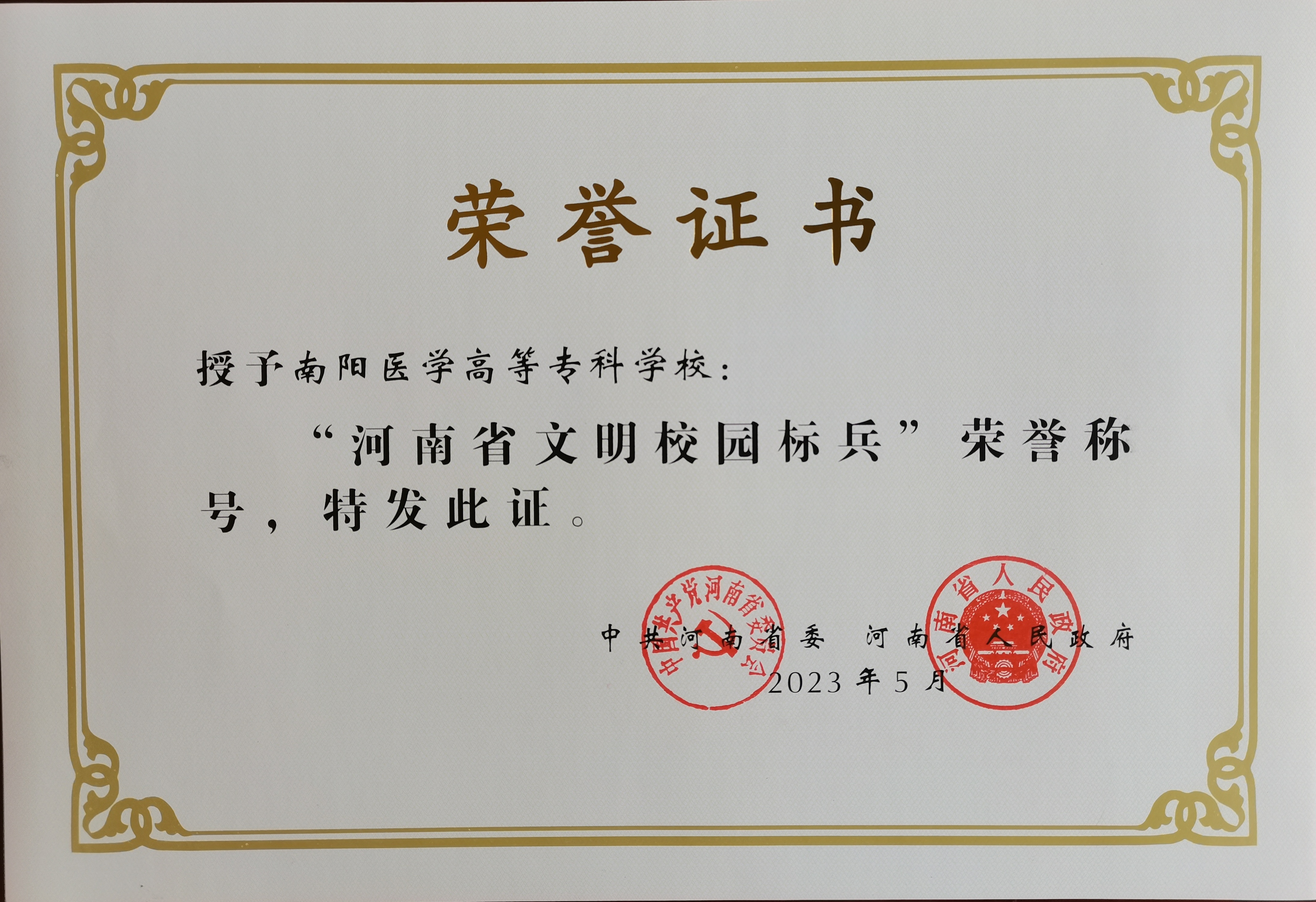 本网讯(文/宣传部 张旭斌)近日,中共河南省委、河南省人民政府印发《关于命名新一届河南省文明城市文明村镇文明单位文明家庭的决定》(豫文〔2023〕50号),多盈手机在线登录被授予“河南省文明校园标兵”称号。