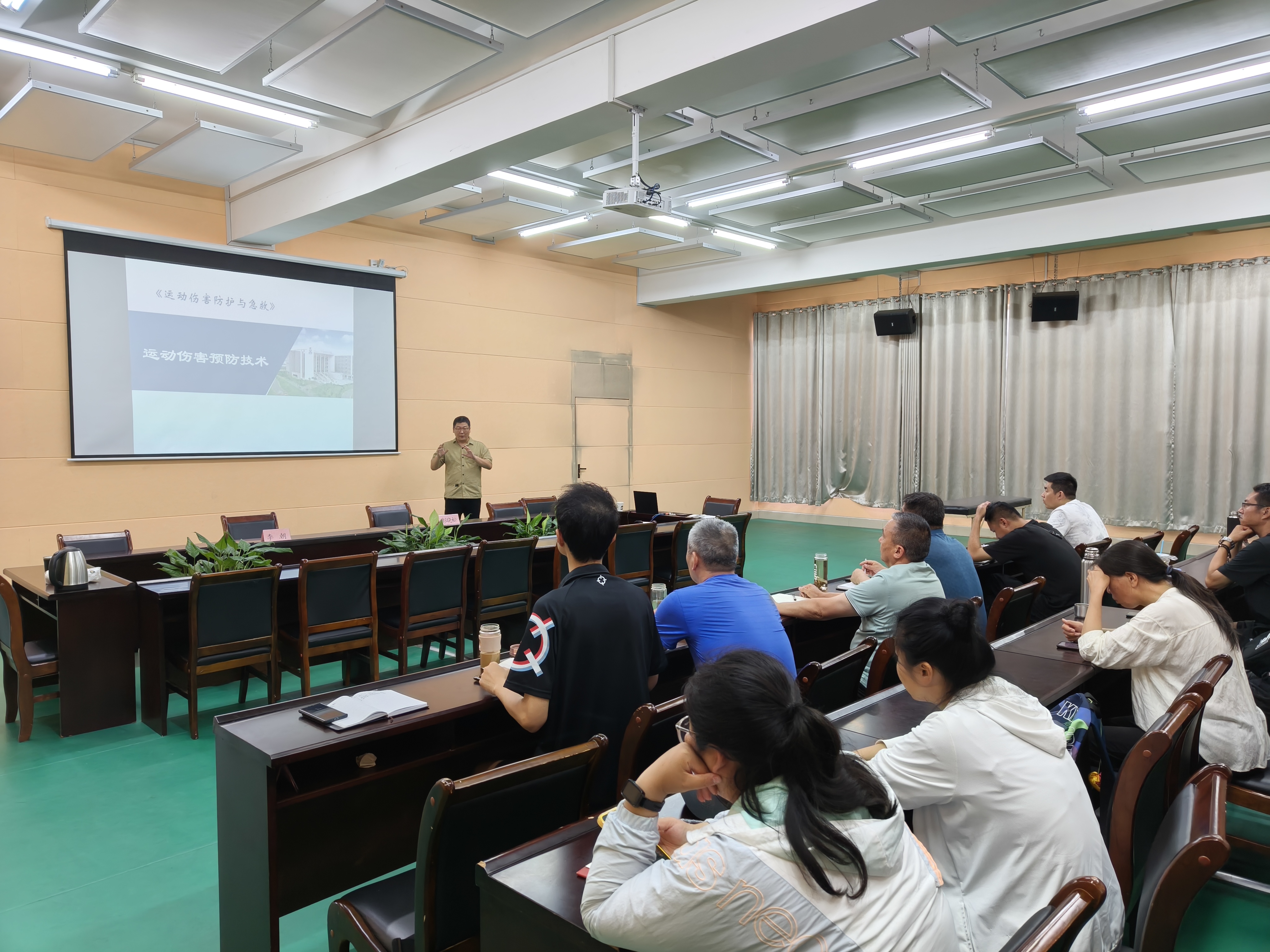 在集中培训阶段,培训邀请康复医学系副主任副教授彭晓松、飞扬健身教练梁俊豪及本部门各专项教师,分别从体育保健与康复技能、微课制作、篮球、健美操、武术、乒乓球、羽毛球、足球等十余个项目开展,通过理论讲授,实践案例分享,观摩交流等方式,帮助参训教师构建系统化的理论知识,并同步开展创新实践探索。