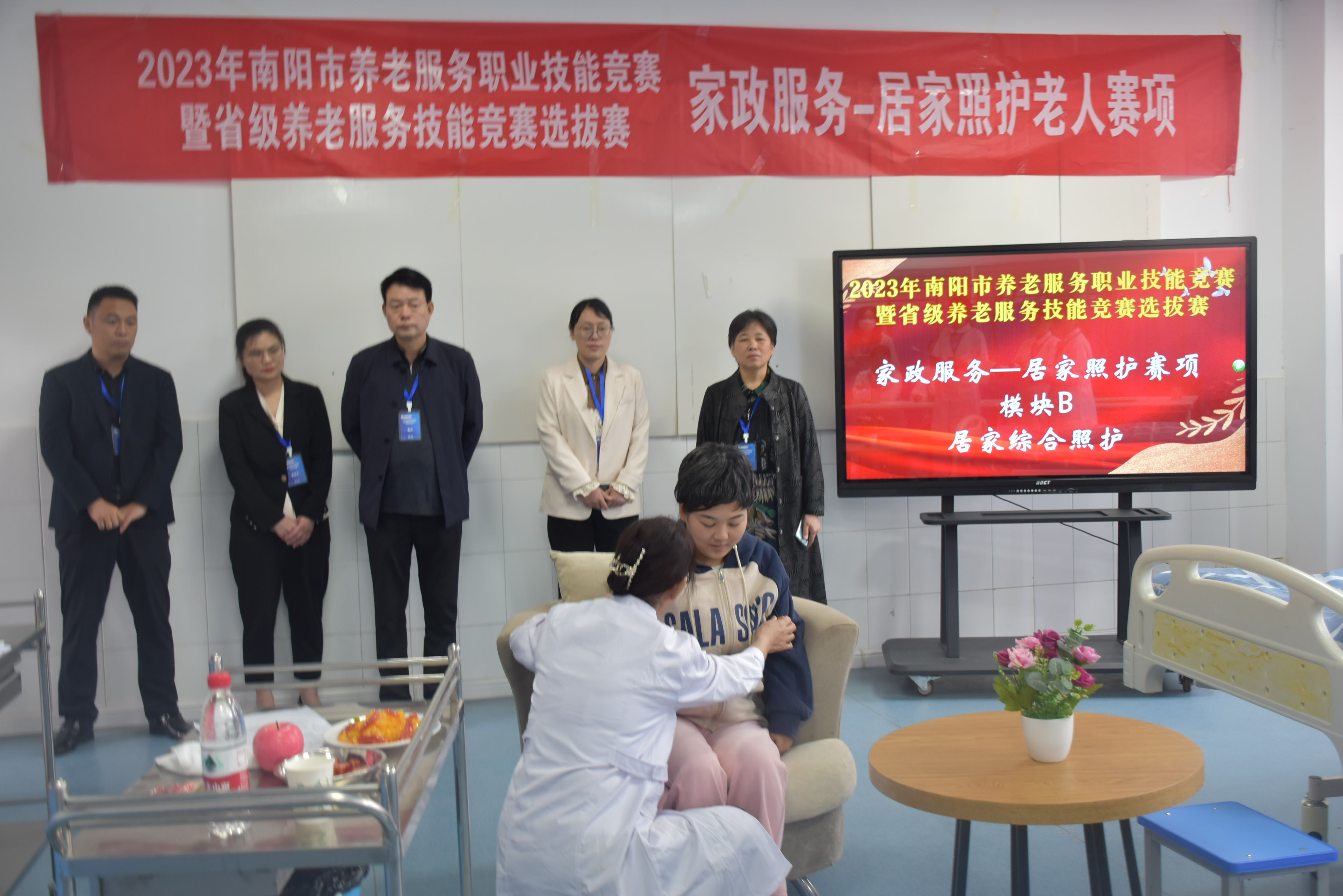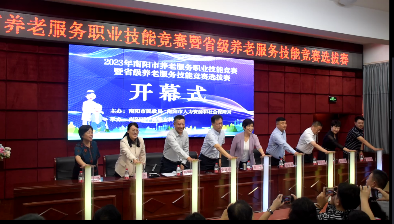 范真致辞,对与会领导和参赛选手的到来表示热烈欢迎,并简要介绍了学校发展历史和近年来取得的成绩。强学喜强调,全市各级各类人员要高度关注我市的养老事业,切实增强养老服务意识,在建好养老设施和用好南阳的“康养宛军”队伍的同时,要建立健全养老服务人才的培养、使用、评价、激励机制,为扎实推进全省养老服务工作“强基工程”和现代化的省域副中心城市建设做出新的更大贡献。