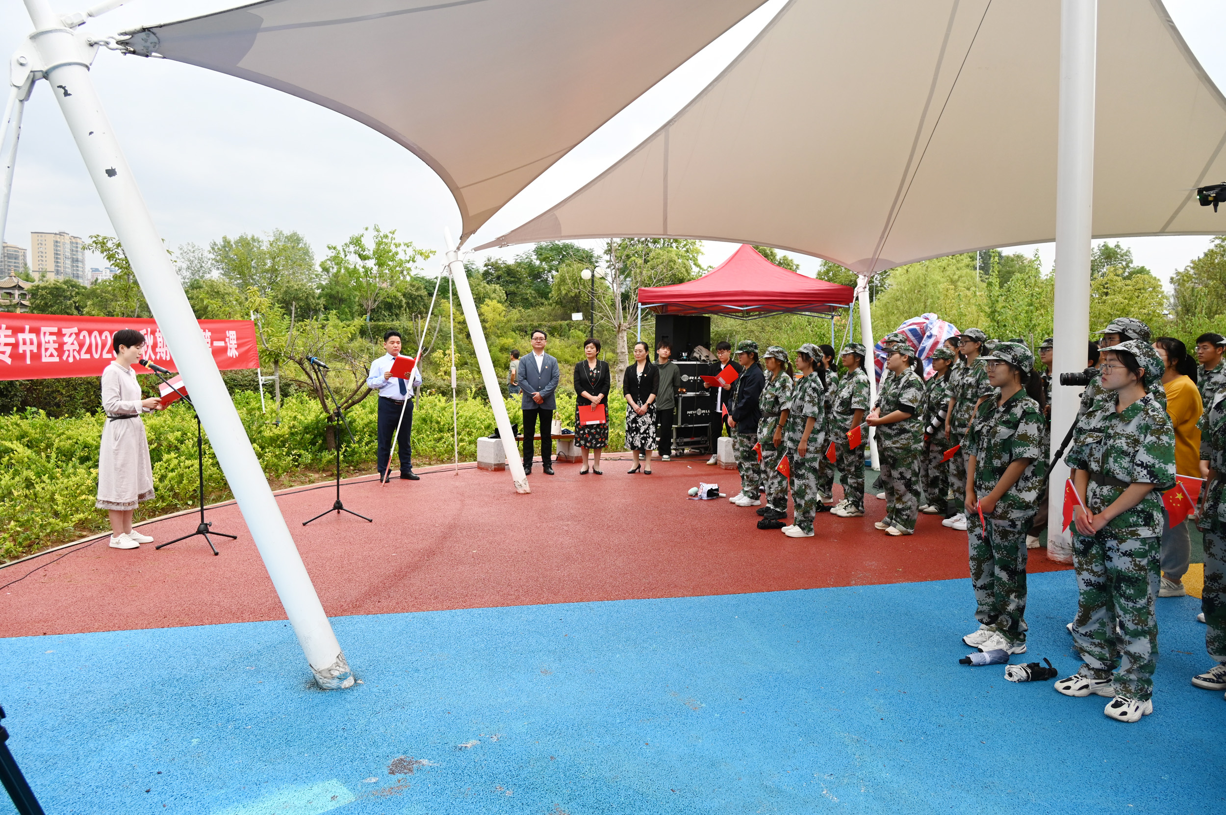 李梦华老师以《铸牢中华民族共同体意识》为题授课。中医系2022级学生代表沙琨宇勉励新同学们要在人生的新篇章中牢记使命,磨砺自己,成就未来。