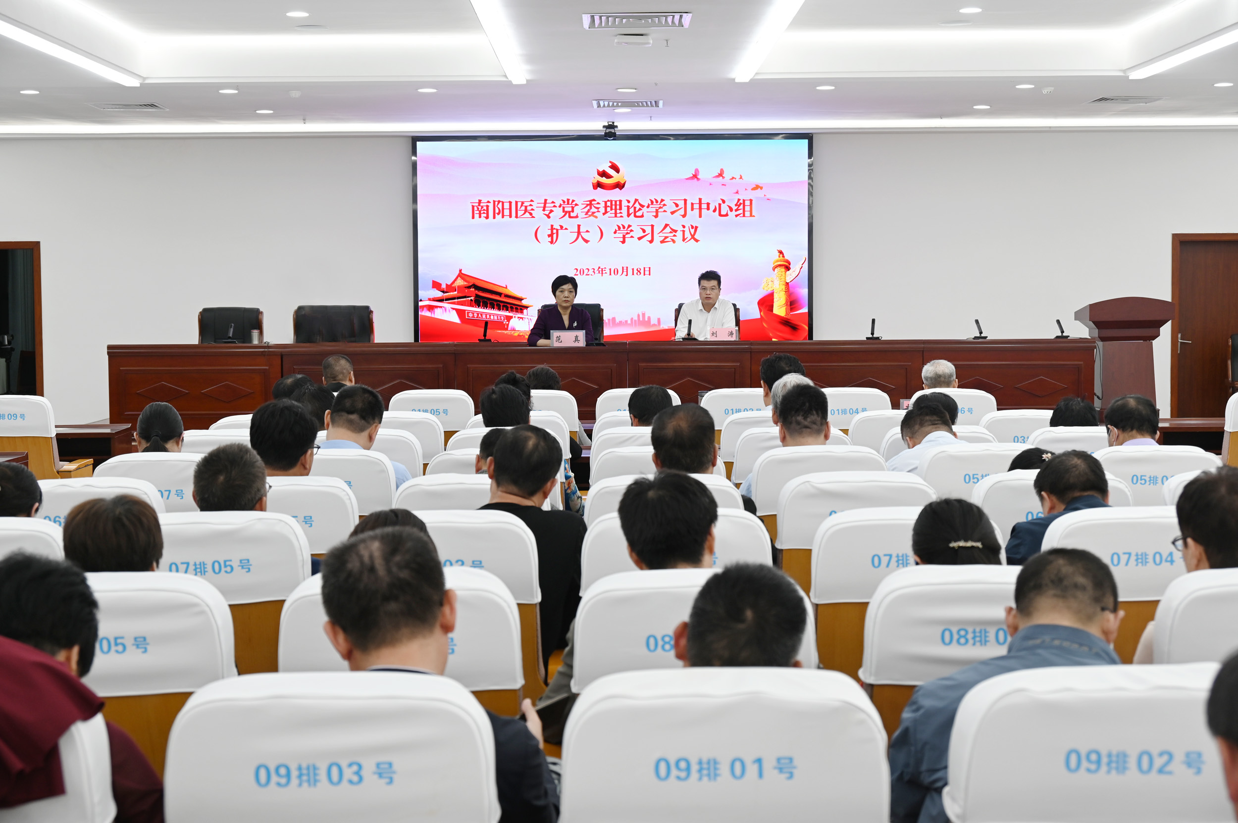 本网讯(文/宣传部 潘晓红)10月18日,按照校党委学习贯彻习近平新时代中国特色社会主义思想主题教育安排部署,学校召开党委理论学习中心组(扩大)学习会议。校长范真作专题报告,党委副书记刘涛主持会议,党委理论学习中心组成员、校本部中层正副职干部、校本部博士、三所附属医院负责同志参加会议。