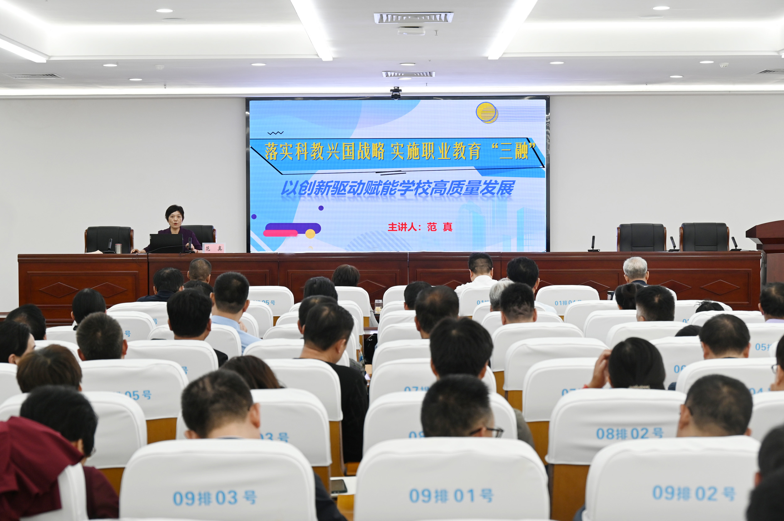 习近平总书记在主持中央政治局第五次集体学习时强调:“建设教育强国、科技强国、人才强国具有内在一致性和相互支撑性,要把三者有机结合起来、一体统筹推进,形成推动高质量发展的倍增效应。”范真结合教育、科技、人才“三位一体”发展的重要作用和高等职业教育发展规律,以《落实科教兴国战略,实施职业教育“三融”—以创新驱动赋能学校高质量发展》为题,从坚持以职普融通为关键点、以产教融合为突破口、以科教融汇服务创新驱动发展战略三个方面阐释了对职业教育“三融”的思考和探索。同时结合教育部发布加快推进现代职业教育体系建设改革的11项重点任务,围绕如何发挥多盈手机在线登录高层次人才科研创新的动能为河南中医药产业、大健康产业提供技术支持、人才支撑,如何通过科教融汇培养出更多具有创新意识、创新能力的高素质高技能人才两个方面进行深入分析,总结多盈手机在线登录的做法和经验,明确下一步重点任务。一是建设市域产教联合体和跨区域引进产教融合共同体,提升人才培养质量。二是结合当前高校信息化发展趋势和多盈手机在线登录发展规划,积极推进国家级职业教育信息化标杆校建设。三是加强国际交流合作,传承弘扬仲景文化,实现职教出海目标。