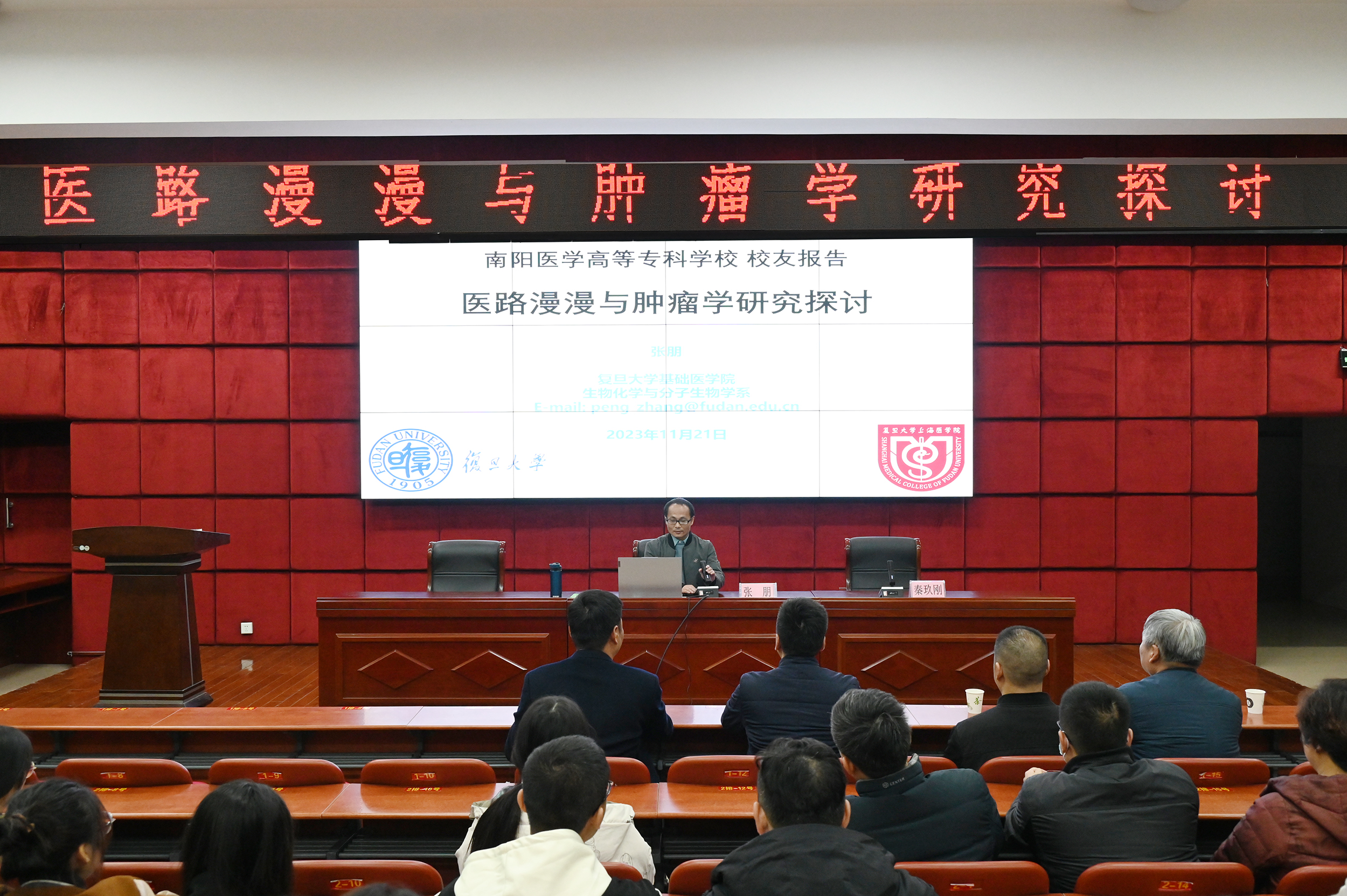 本网讯(文/就业创业处 杜婧)浓浓母校情,依依校友心。11月20日晚,医路漫漫与肿瘤学研究探讨专题报告会在多盈手机在线登录图书馆五楼报告厅举办,报告会由多盈手机在线登录杰出校友、上海复旦大学基础医学院生物化学与分子生物学系副研究员、美国威斯康星医学院博士后张朋讲授,校党委委员、副校长秦玖刚出席并主持报告会,临床医学系、基础医学部40余名教师及200余名在校学生参会。报告会采用线上线下相结合的模式同步进行。