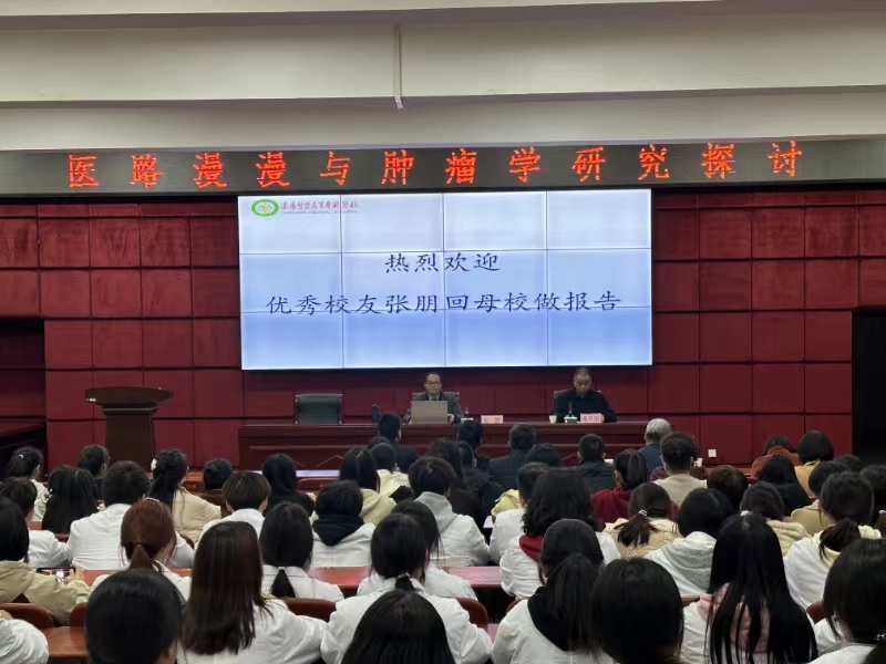 张朋结合自身学习与工作的经历,从医路历程、肿瘤学研究浅谈、医学学习过程中的一些个人感悟三方面进行了分享、交流,详细介绍了胰腺癌、前列腺癌的产生、特点以及治疗,鼓励新一代的学弟学妹坚定自己的目标,树立良好的就业观,无论学习还是生活,既要抓住机遇、志存高远,也要脚踏实地、行稳致远,为多盈手机在线登录师生上了一堂内容丰富、内涵深远的一课。讲座现场不时传来阵阵掌声,同学们纷纷表示在今后的学习生活中,要以优秀校友为榜样,积极树立远大目标和人生理想,感恩母校,回馈社会。