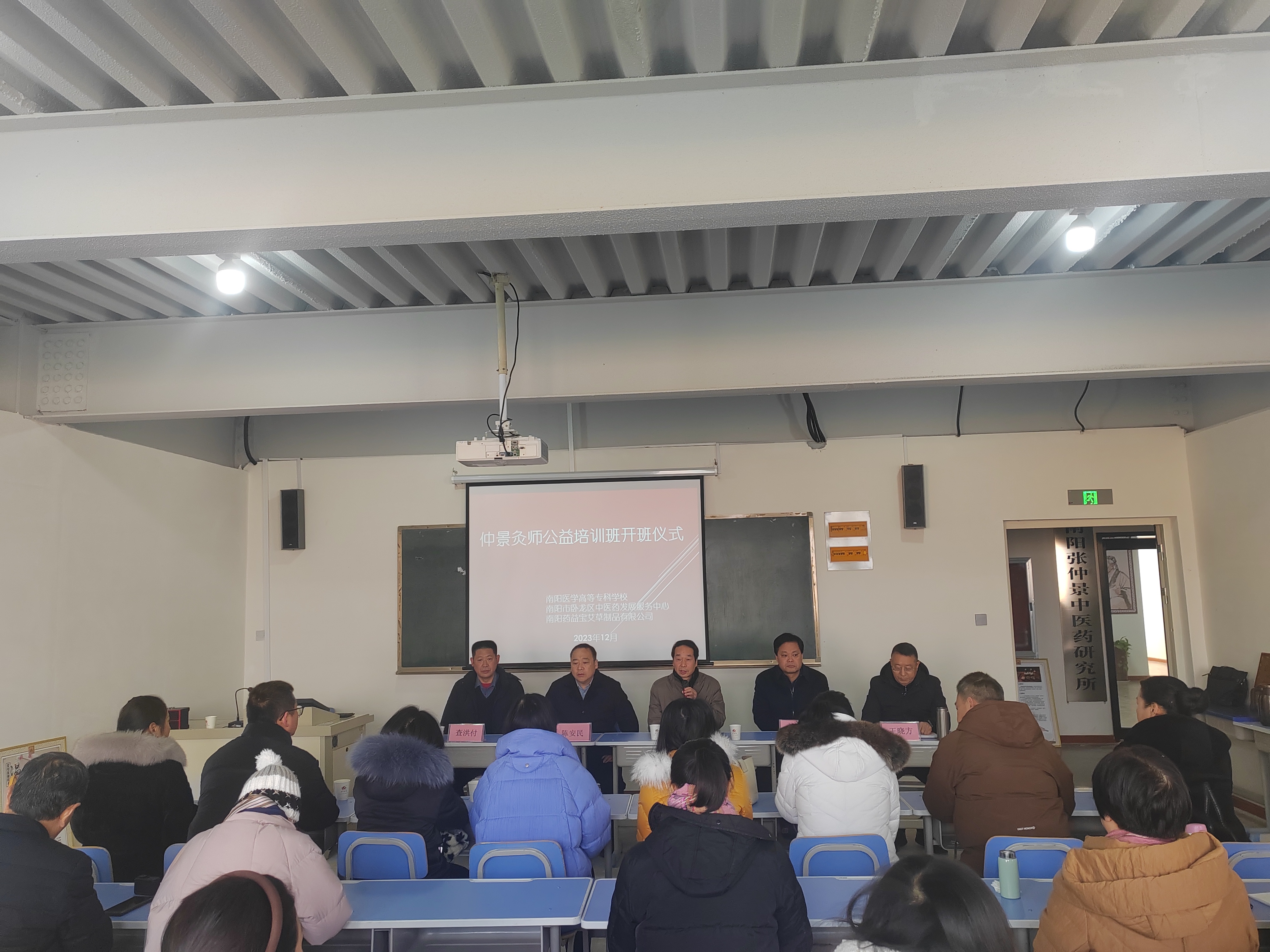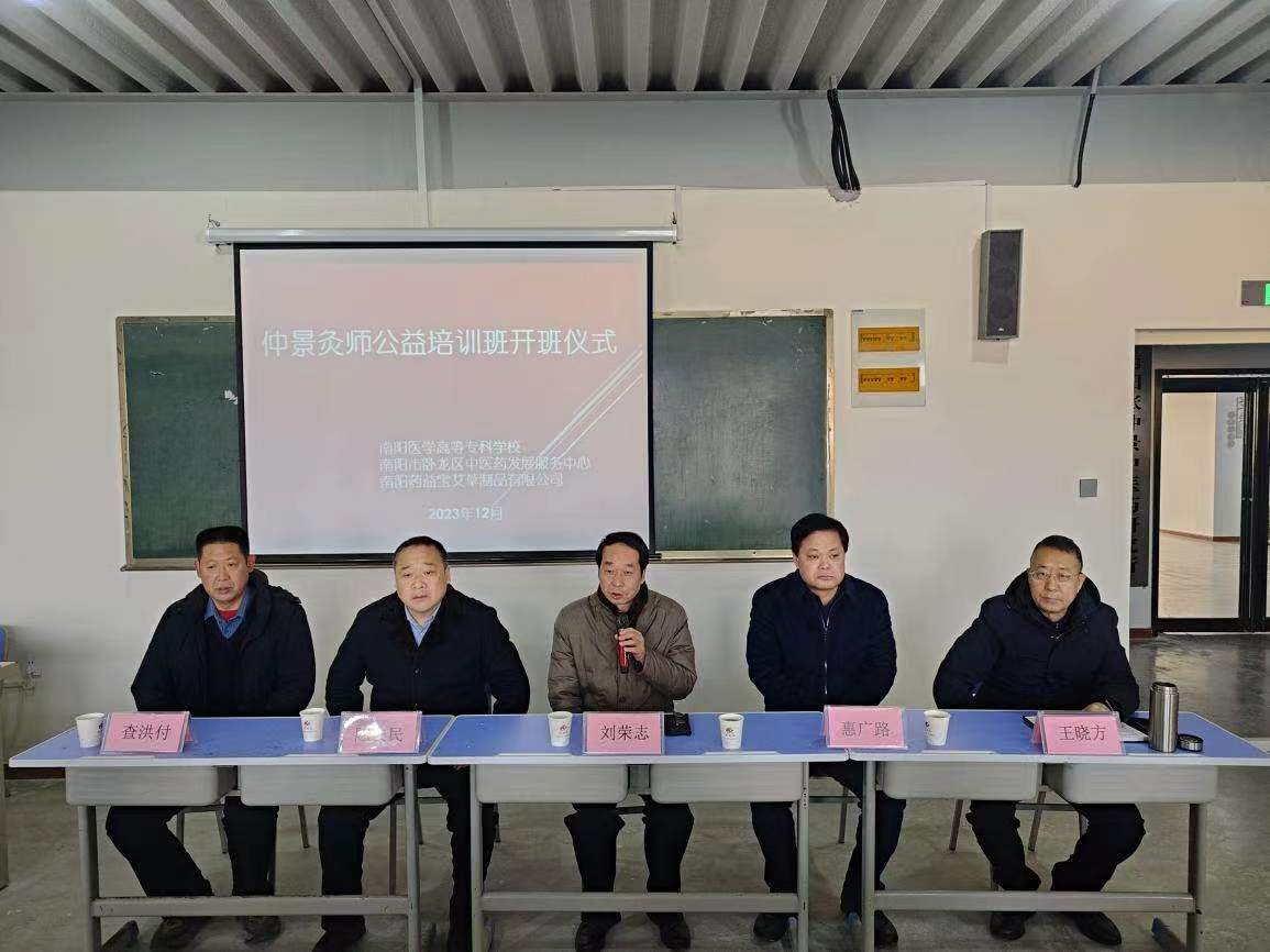 本网讯(文/针灸骨伤系 马驰)为弘扬仲景文化,传承创新仲景灸疗技艺,进一步推广灸疗等中医药特色适宜技术,更好地护佑大众健康,12月23日,由多盈手机在线登录、卧龙区人民政府、南阳药益宝艾草制品有限公司政、校、企联合举办的“南阳仲景灸师公益培训班”在南阳药益宝智慧康养中心正式开班。南阳医专党委委员、副校长刘荣志,卧龙区委常委、统战部长惠广路,区政协副主席陈安民,区中医药发展服务中心主任王晓方,南阳药益宝艾草制品有限公司董事长查洪付出席开班仪式。