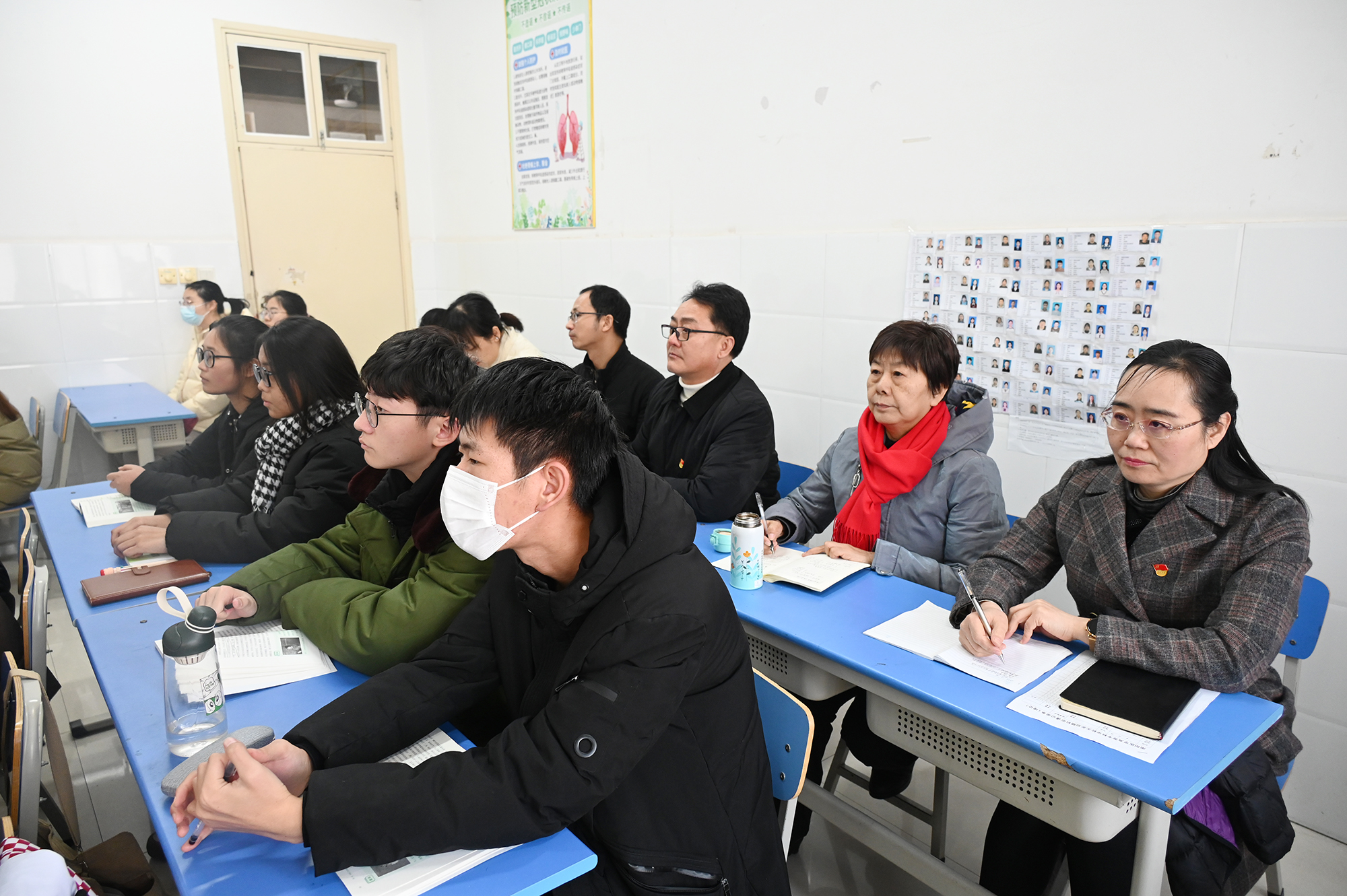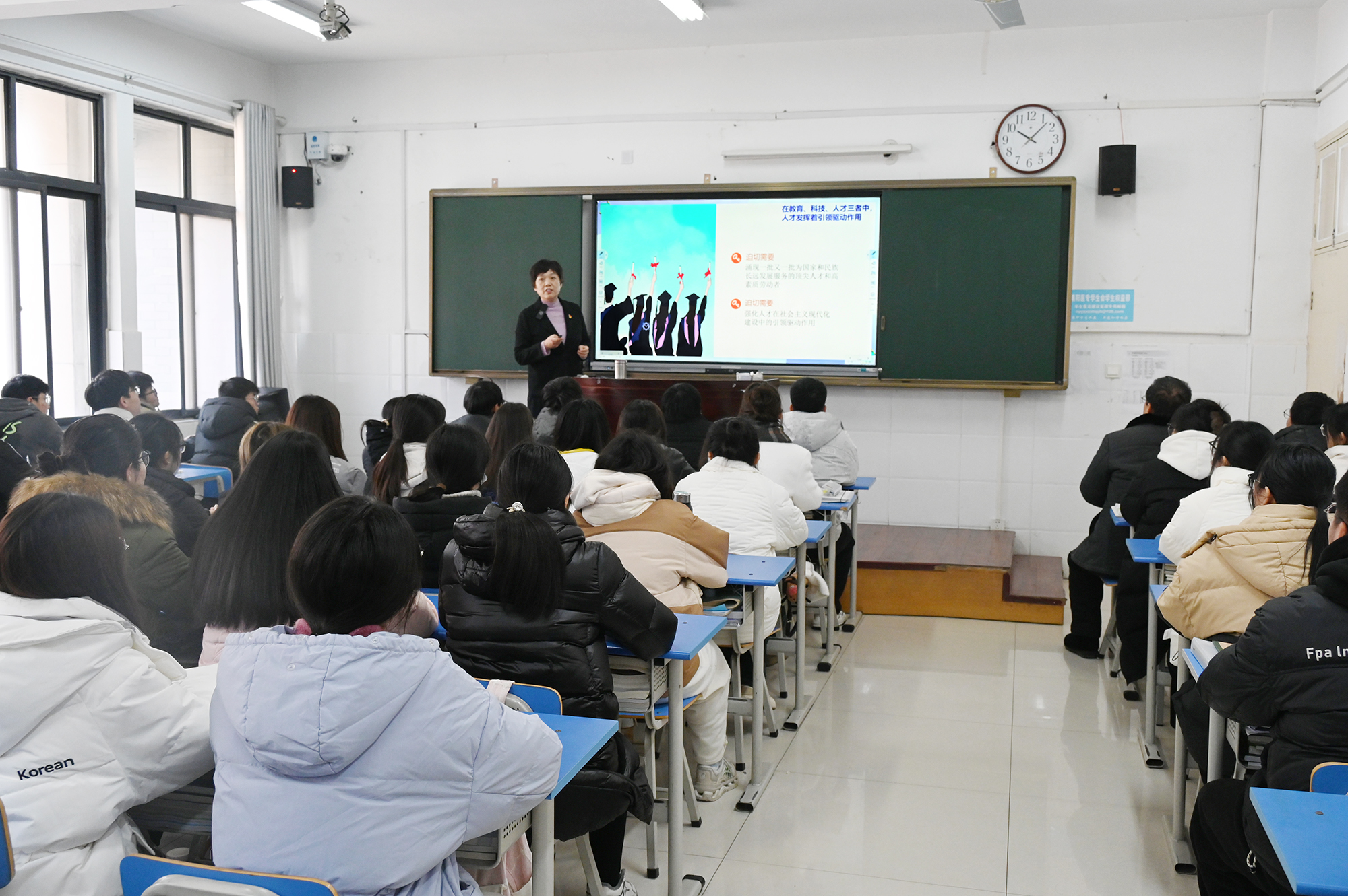 本网讯(文/马克思主义学院 何义霞)12月26日上午,校长范真在南阳医专仲景东区岐黄楼503教室为2023级中医2班学生讲授思政课并主持召开师生座谈会。学校中医系、马克思主义学院负责同志和部分青年教师全程参加本次活动。