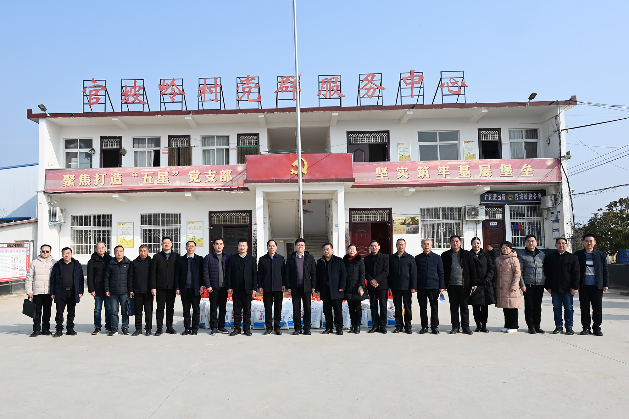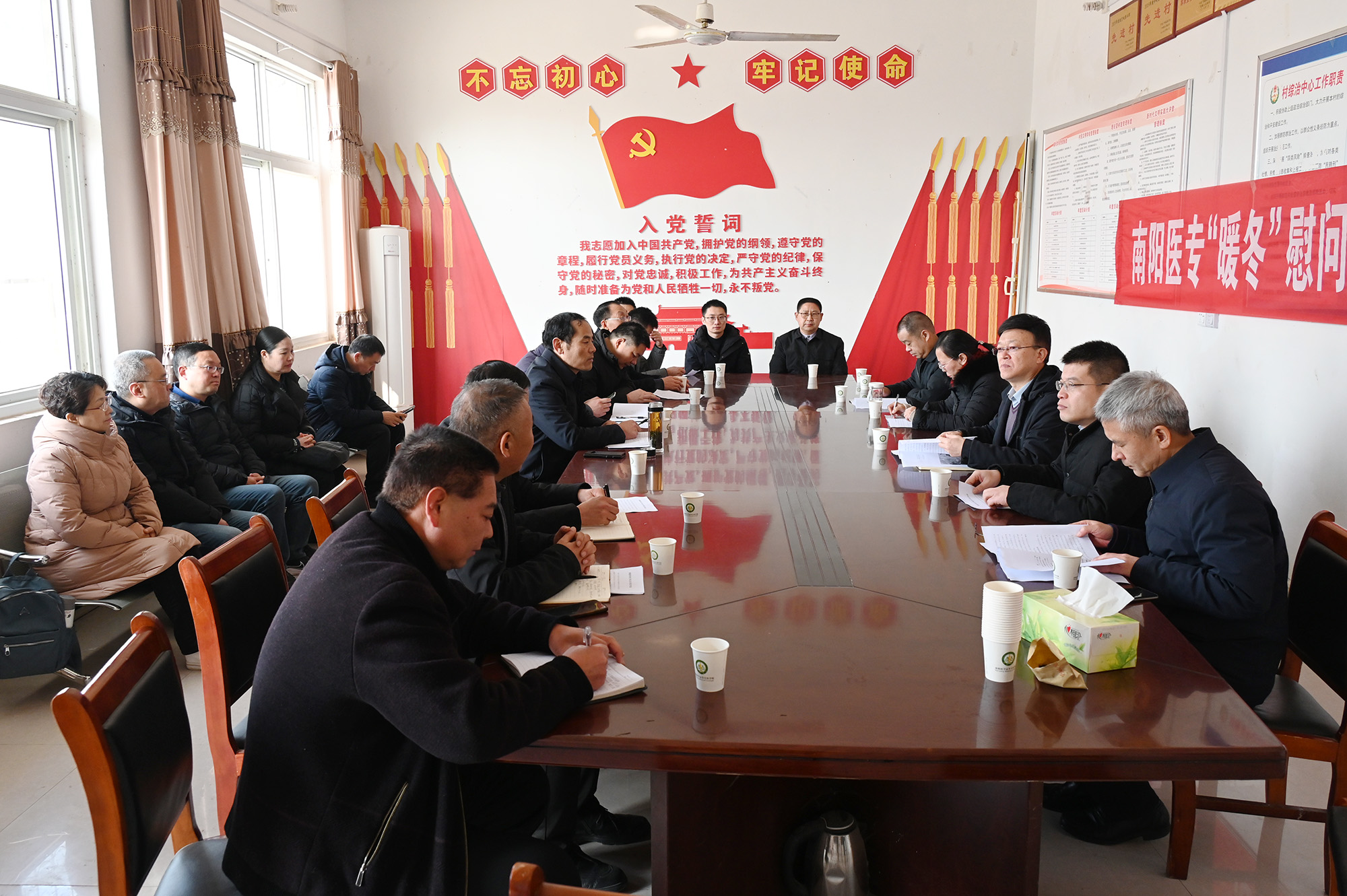 本网讯(文/组织部 邢富斌 实验设备管理中心 曾峰)1月29日上午,南阳医专党委书记柳明伟、党委副书记刘涛、工会主席杜晓平、副校长郭延东、副校长秦玖刚,带领帮扶责任人来到方城县广阳镇官坡岭村驻地开展“南阳医专‘暖冬’慰问送关怀 真情帮扶暖人心活动”,走访慰问脱贫户和驻村干部,调研帮扶产业发展、乡村建设和乡村治理等情况,为困难群众送上暖冬物资和新春祝福。方城县副县长樊海鹏、人大副主任高中玉、组织部副部长邵玉民、乡村振兴局局长李志杰等陪同慰问走访。