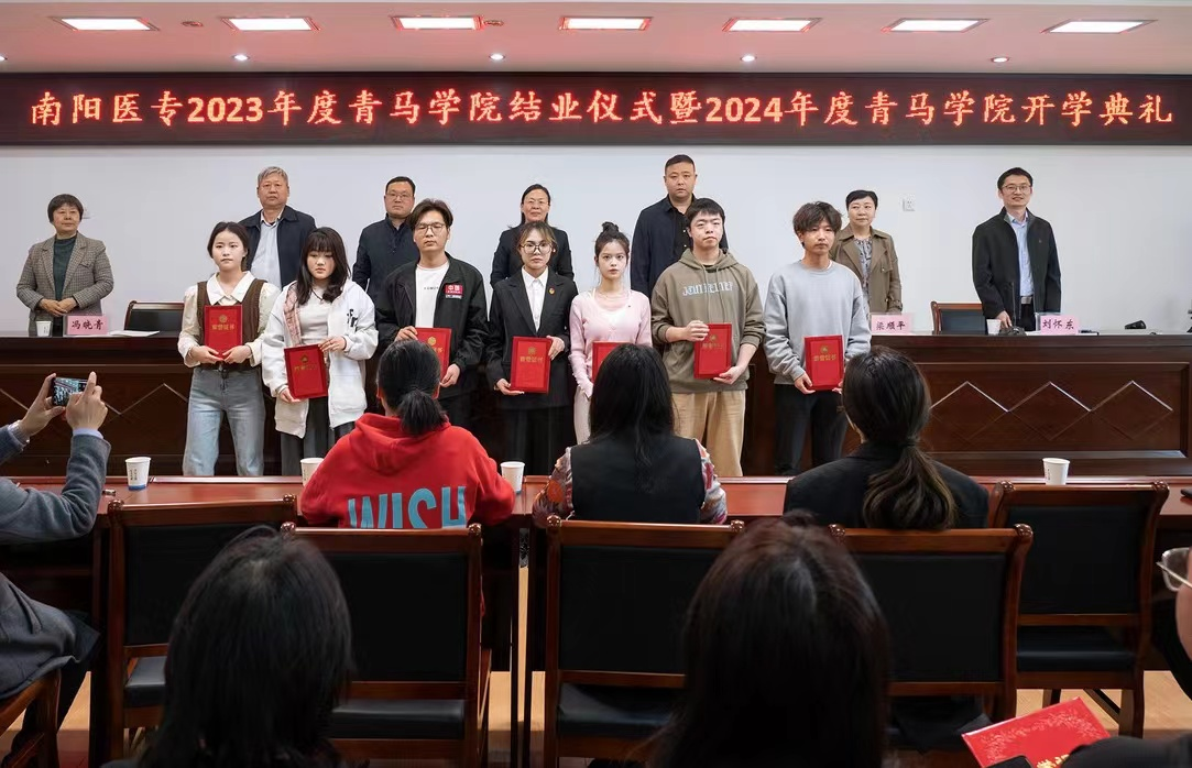 会上,杜晓平为2024年度青马学院授旗,李红普、张博分别宣读了《关于南阳医专2023年度青马学院结业的通知》《关于举办南阳医专2024年度青马学院的通知》,出席会议的领导为2023年度青马学院代表、优秀学员代表颁奖。青马学院学员代表发言,立志成为新时代勇担民族复兴大任的追梦者和圆梦人。