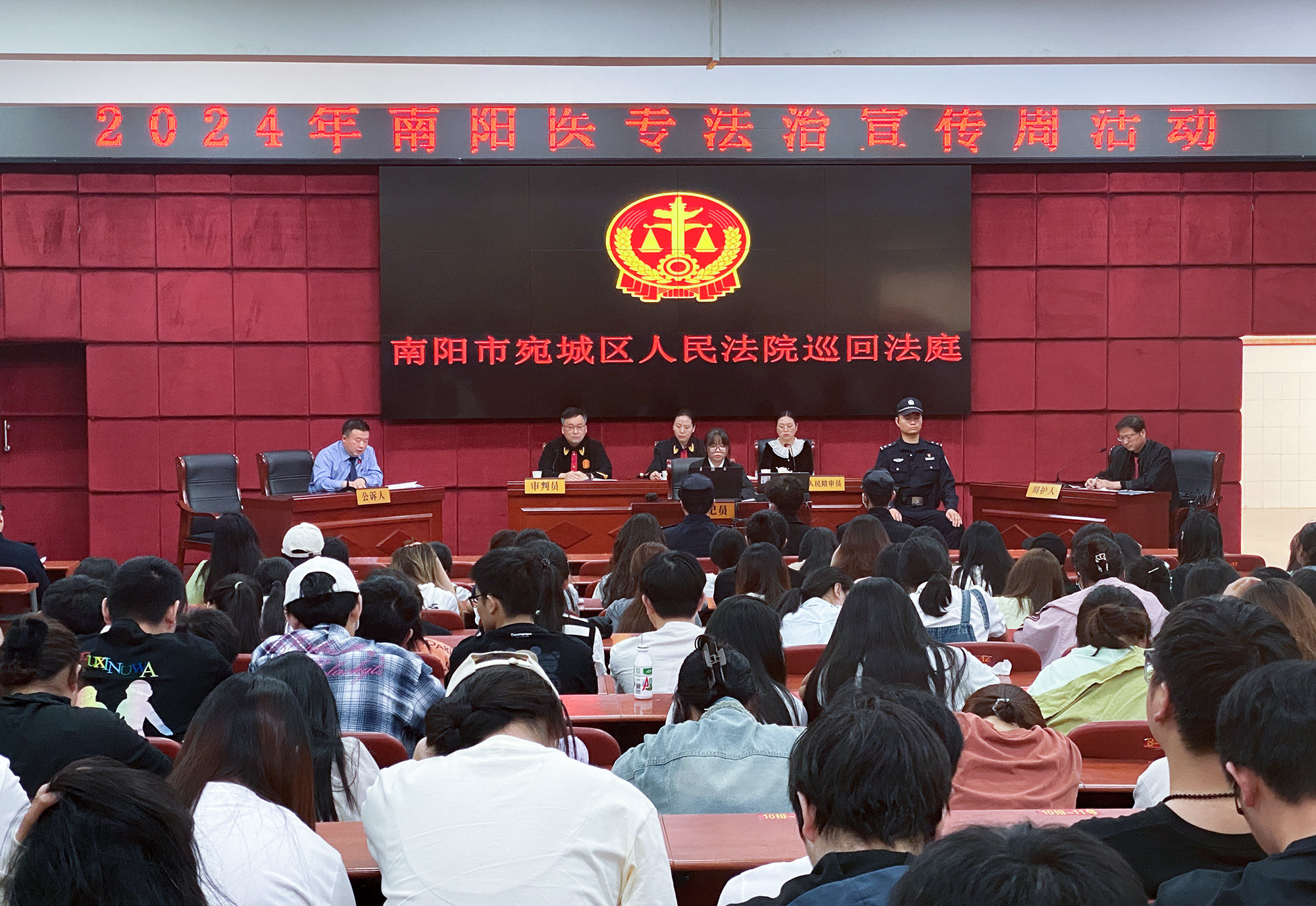 本网讯(文/法制办公室 张斌)4月24日,多盈手机在线登录与宛城区人民法院联合开展以“巡回法庭进高校,警示教育零距离”为主题的巡回审判活动,将刑事巡回法庭请进了高校,让280余名师生“零距离”地体验了一场别开生面的警示教育。