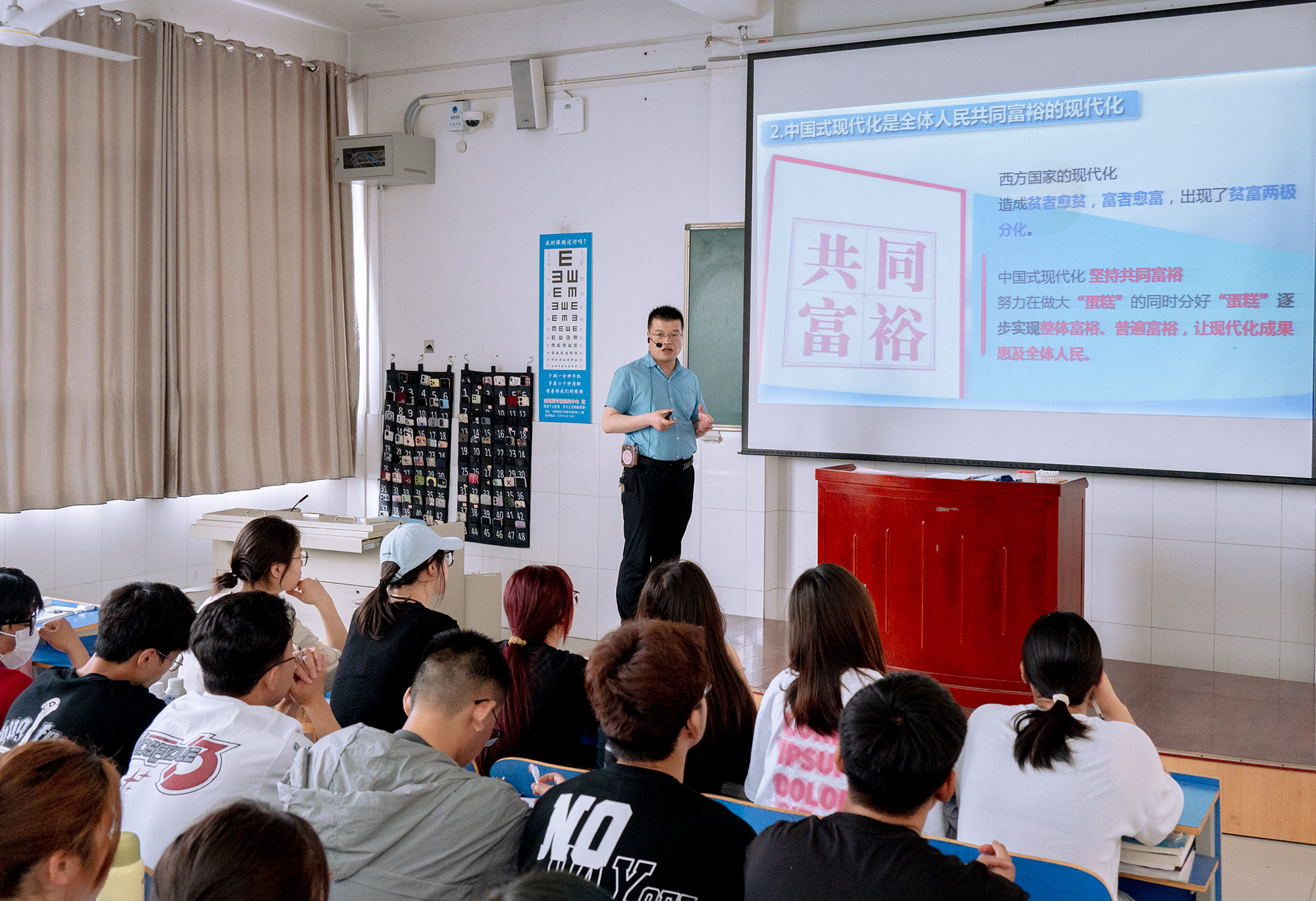 刘涛以方志敏烈士《可爱的中国》开讲,从“读懂中国式现代化的中国特色、推进中国式现代化行稳致远、新时代新征程青年的使命担当”三个方面进行了深入浅出的讲解,既有整体解读也有重点阐释。课程结合当前国际国内形势,通过典型案例,从历史和现实等多层面引导学生理解“如何读懂中国式现代化的中国特色”和“怎样承担新时代青年的责任使命”这些重要课题。课堂上观看了习近平总书记与大学生在一起的温暖瞬间,重温了习近平总书记对大学生们的殷切寄语:“不负韶华,不负时代,不负人民,在青春的赛道上奋力奔跑,争取跑出当代青年的最好成绩”。最后,他还结合多盈手机在线登录优秀毕业生范浩源、史双奎的先进事迹,鼓励同学们既要怀抱梦想又要脚踏实地,既要敢想敢为又要善作善成,立志做有理想、敢担当、能吃苦、肯奋斗的新时代好青年,让青春在推进中国式现代化的火热实践中绽放绚丽之花。