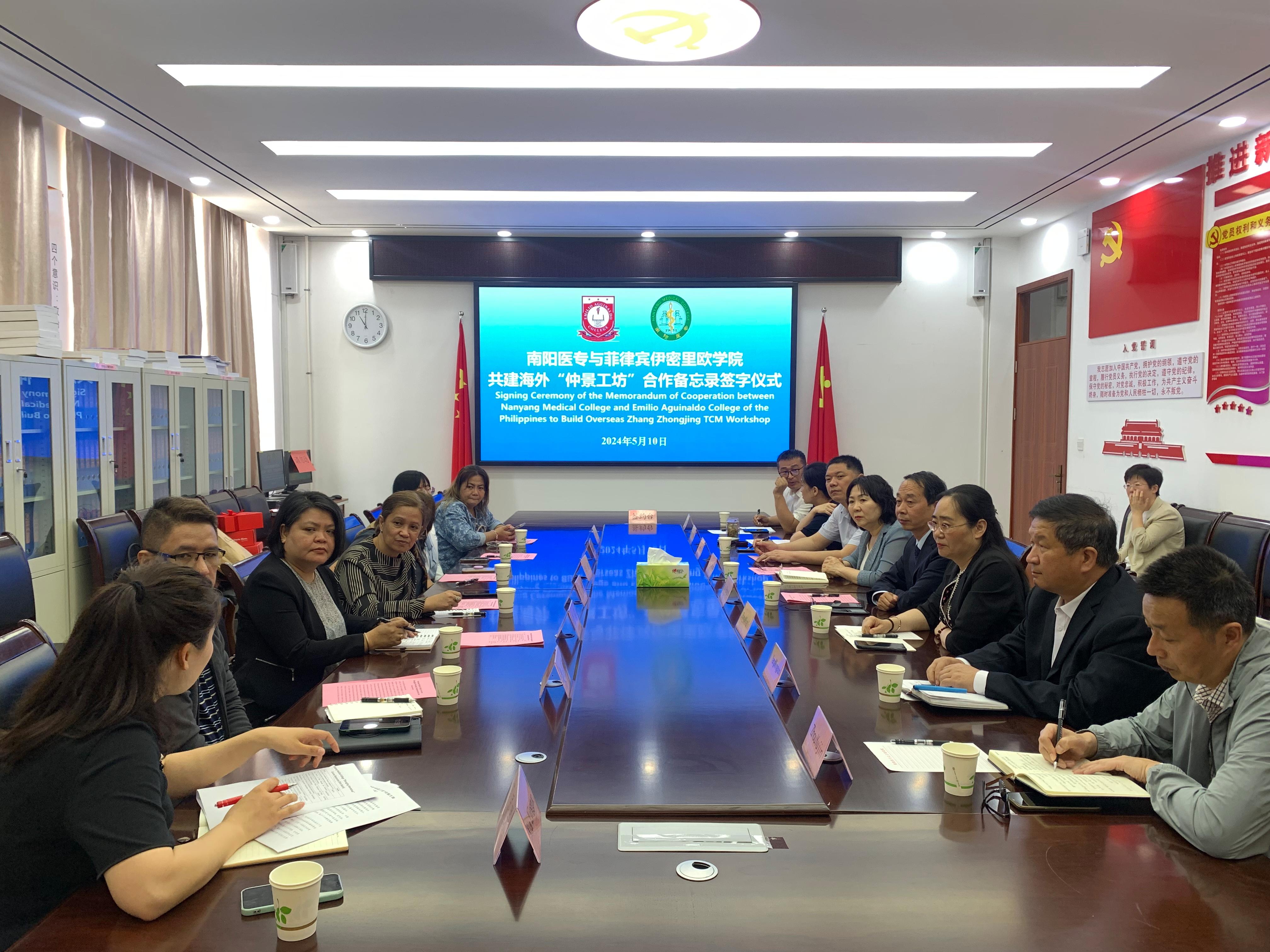 本网讯(文/国际教育学院 李斐)5月10日上午,多盈手机在线登录与菲律宾伊密里欧学院共建海外“仲景工坊”合作备忘录签约仪式在仲景西区精术楼423会议室举行。校党委委员、纪委书记刘金云,校党委委员、副校长刘荣志,菲律宾伊密里欧学院董事会成员、医学院院长劳娜,副校长瑞贝卡出席会议,多盈手机在线登录相关职能部门负责同志参加会议。会议由外事处处长范卫杰主持。