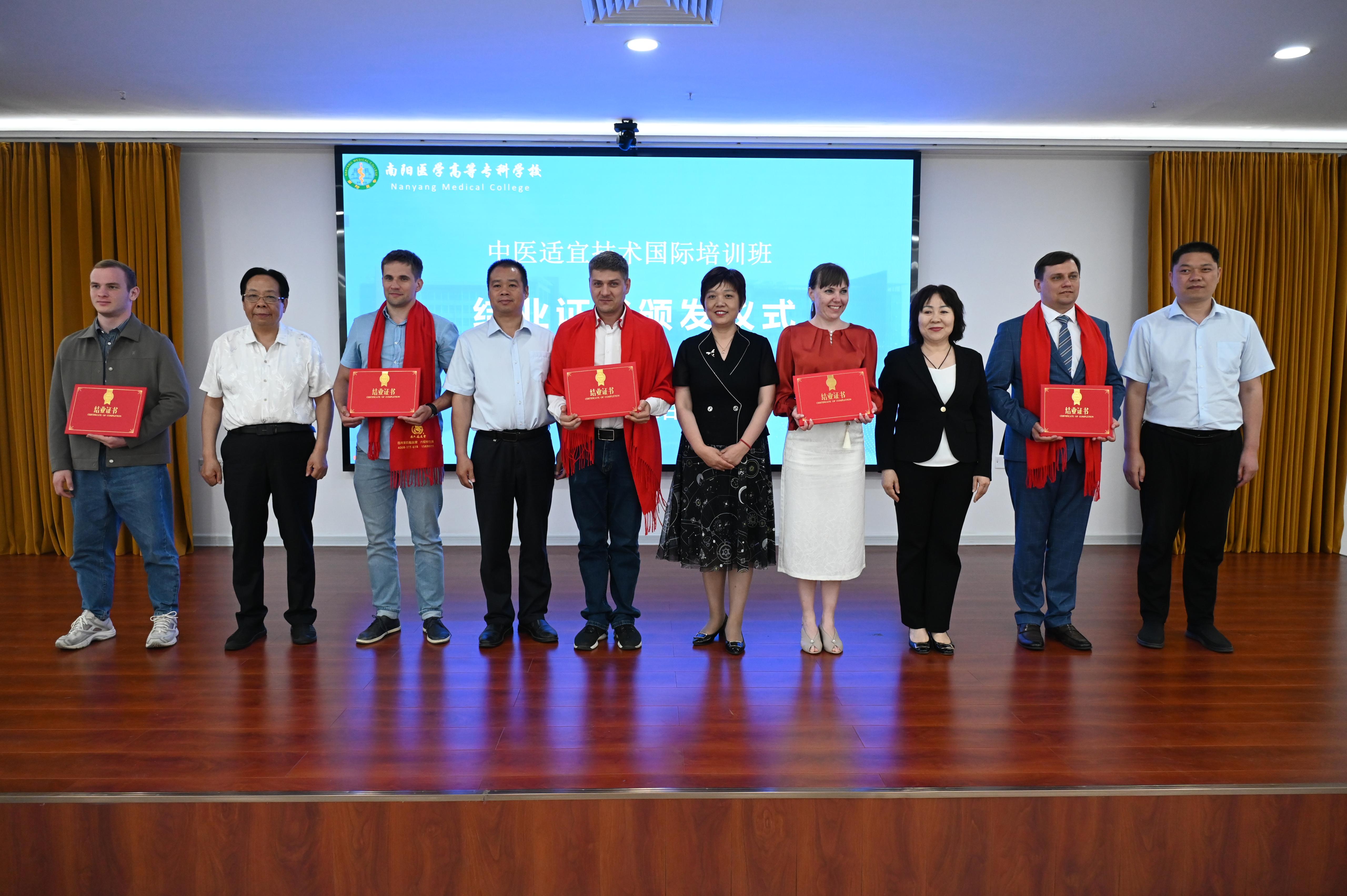 本网讯(文/国际教育学院 李斐)5月16日,南阳医专第八届国际文化交流周闭幕式暨中医适宜技术国际培训班结业典礼在仲景文化中心举行。校长范真,副校长刘荣志、秦玖刚,俄罗斯中医药学会会长任泽斌、菲律宾伊密里欧学院甲米地校区副校长瑞贝卡出席会议,多盈手机在线登录相关部门负责人及来自俄罗斯、菲律宾、马来西亚、美国的70余名外宾参加会议,纪委书记刘金云主持会议。