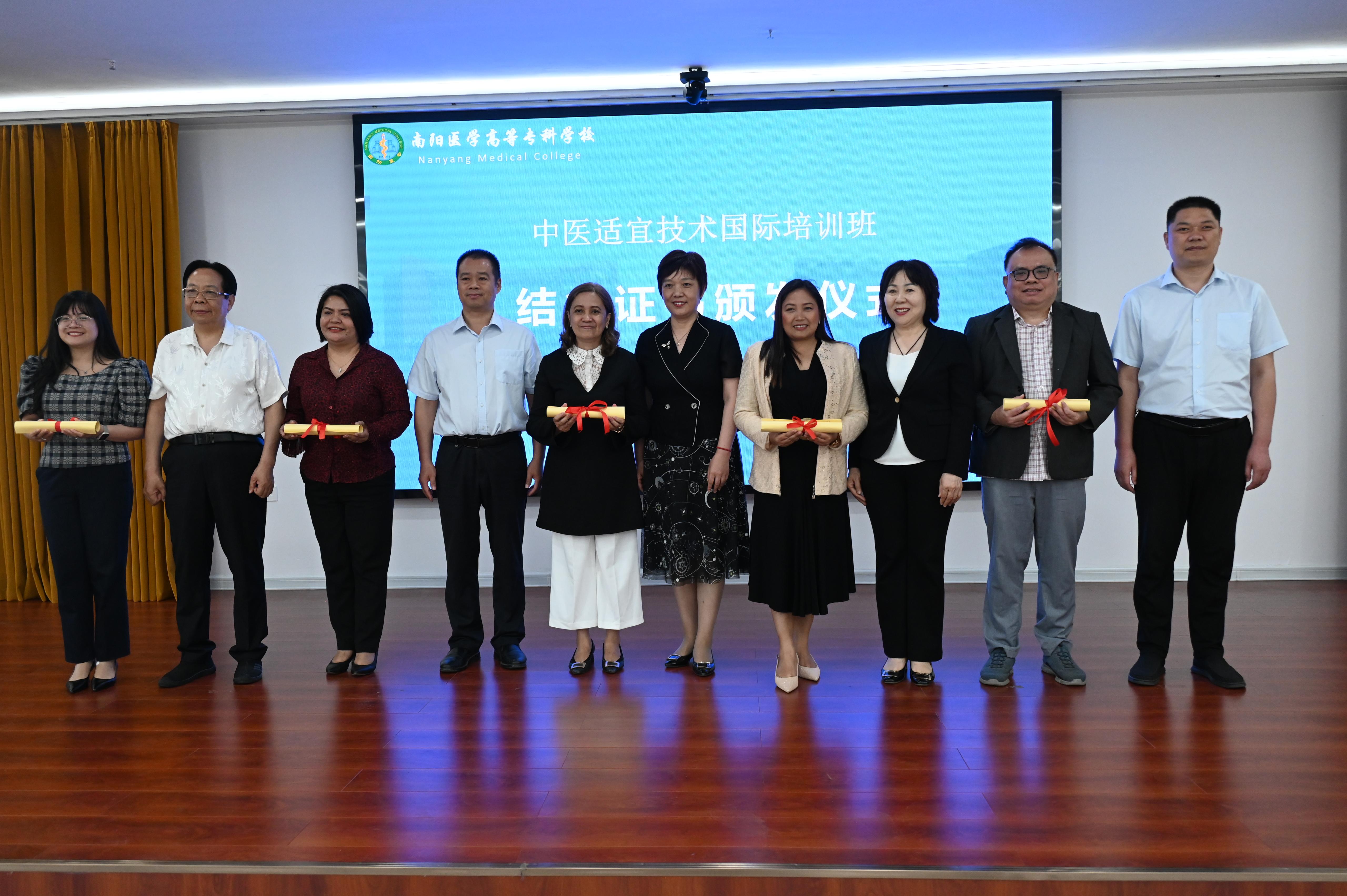 培训班学员代表、授课教师代表及培训班班主任相继发言,与在场师生交流心得体会。校领导为俄罗斯中医药学会和菲律宾伊密里欧学院授海外“仲景工坊”牌匾,并为学员颁发培训结业证书。最后,闭幕式暨结业典礼在中外师生文艺演出中圆满落幕。