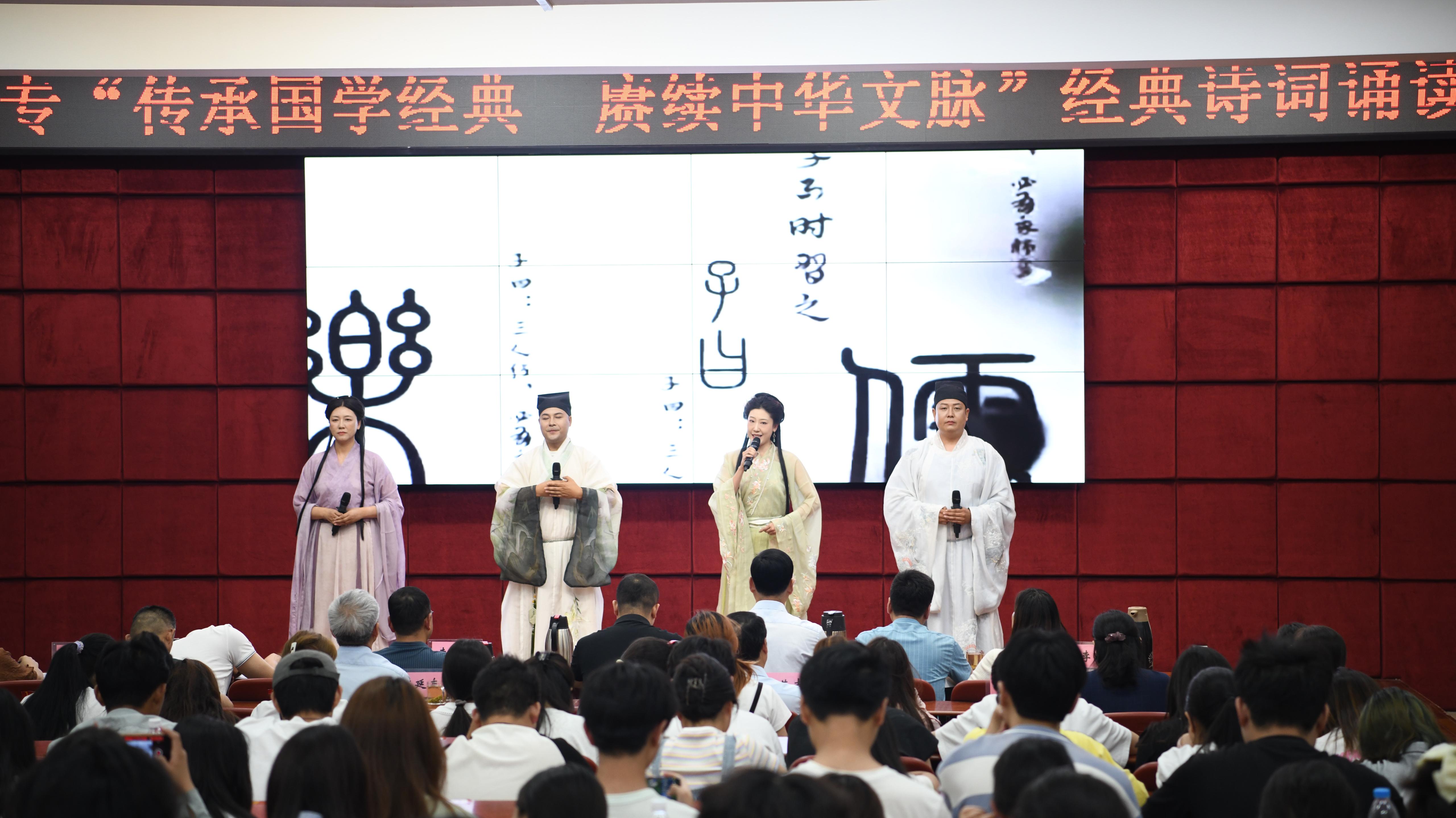 本次经典诗词诵读大赛,各参赛部门精心组织,参赛作品紧扣主题。《将进酒》《木兰辞》《春江花月夜》《念奴娇·赤壁怀古》等一篇篇经典名作以表演诵、诗配乐等多种形式呈现,展现了经典诗词的深邃与精妙。以诗叙事,以言抒情,选手们以声音跨越千年,穿越历史时空,重温先贤足迹,充分展示了中华经典的无限风韵与魅力,为现场观众带来了一场中华文化之美的沉浸式体验。整场比赛高潮迭起、精彩纷呈,每一位参赛教师都展现出了扎实的语言功底和深厚的文化底蕴,深情的朗诵和真挚的情感赢得了在场观众的阵阵掌声。
