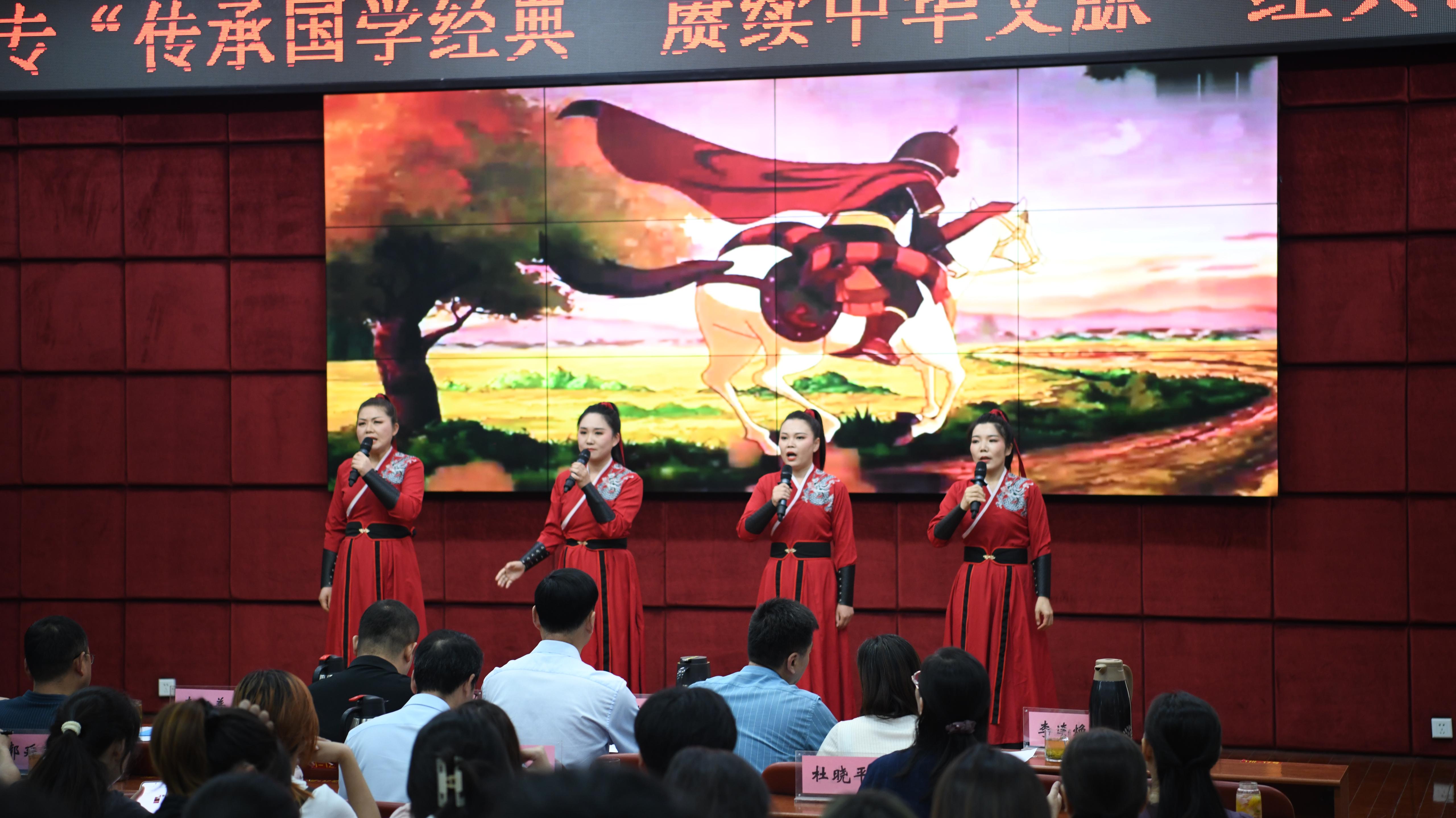 本网讯(文/图书馆 陈安子)5月29日下午,由多盈手机在线登录主办,党政办公室、统战部、宣传部、工会和图书馆共同承办的南阳医专第十六届读书文化节“传承国学经典 赓续中华文脉”教职工经典诗词诵读大赛在仲景西区图书馆五楼报告厅举行。工会主席杜晓平、副校长郭延东、刘荣志与200余名师生共同观赛。