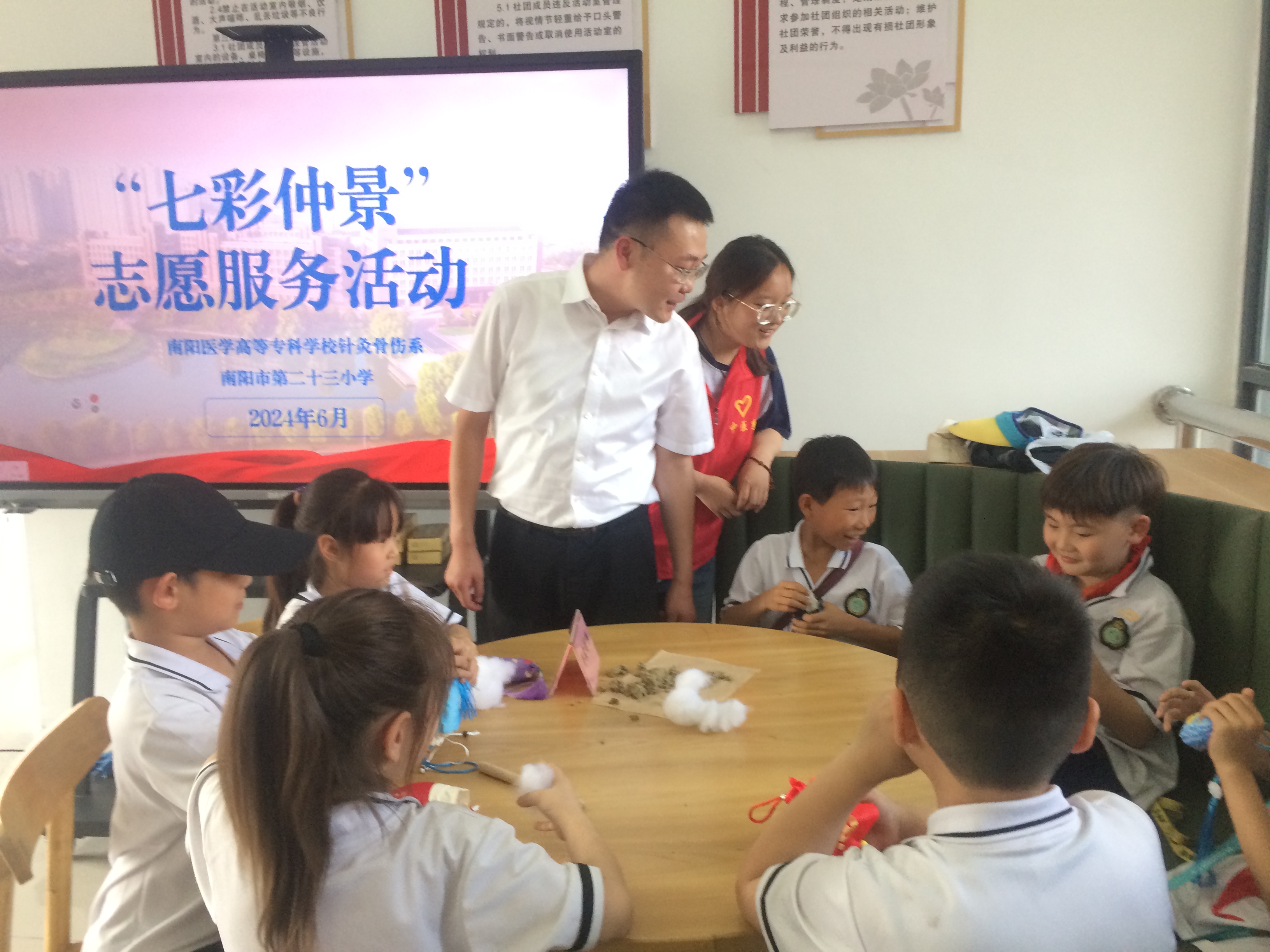 刘荣志向来访的师生表示欢迎。他指出,南阳医专与卧龙区委、区政府不断深化校地合作,在中医药文化传承创新及科普宣传等领域取得了丰硕成果,此次活动为南阳医专与卧龙区校地合作画上浓墨重彩的一笔。南阳医专与第二十三小学一路之隔、互为睦邻,具备开展仲景文化传承和科普交流活动的先天优势,此次活动将成为促进南阳医专与卧龙区教育系统开展中医药文化传承创新、持续深度合作的关键一步。