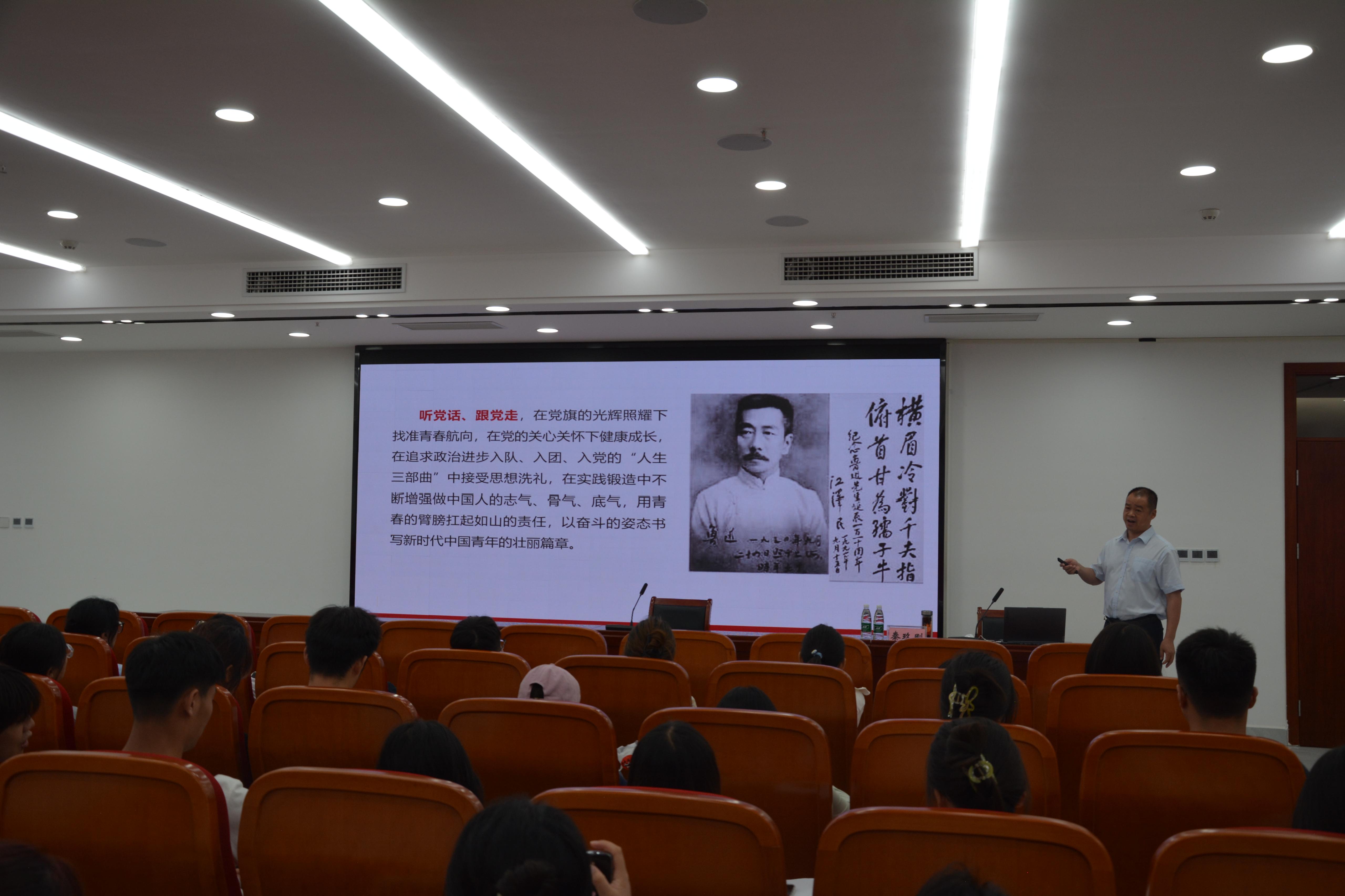 本网讯(文/校团委 韩江源)6月13日下午,在仲景文化中心702报告厅,校党委委员、副校长秦玖刚以《点亮青年心中的理想之灯》为题,为2024年度青马学院全体学员作理论培训。